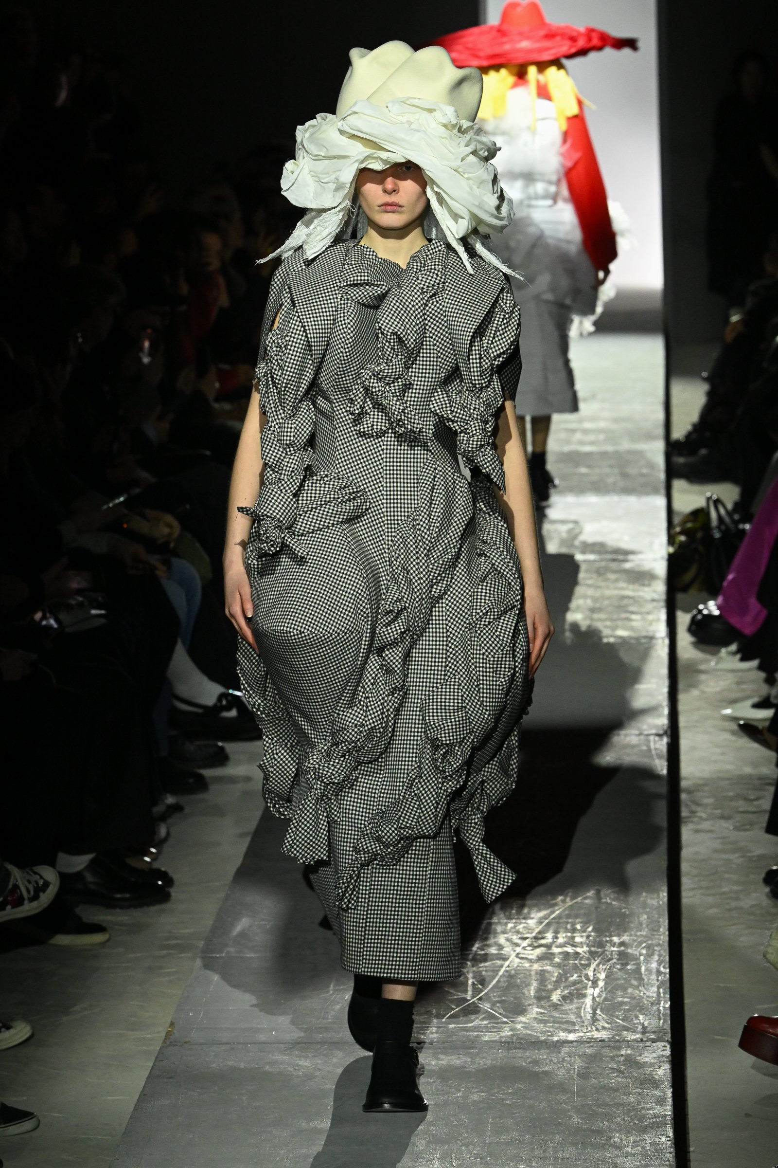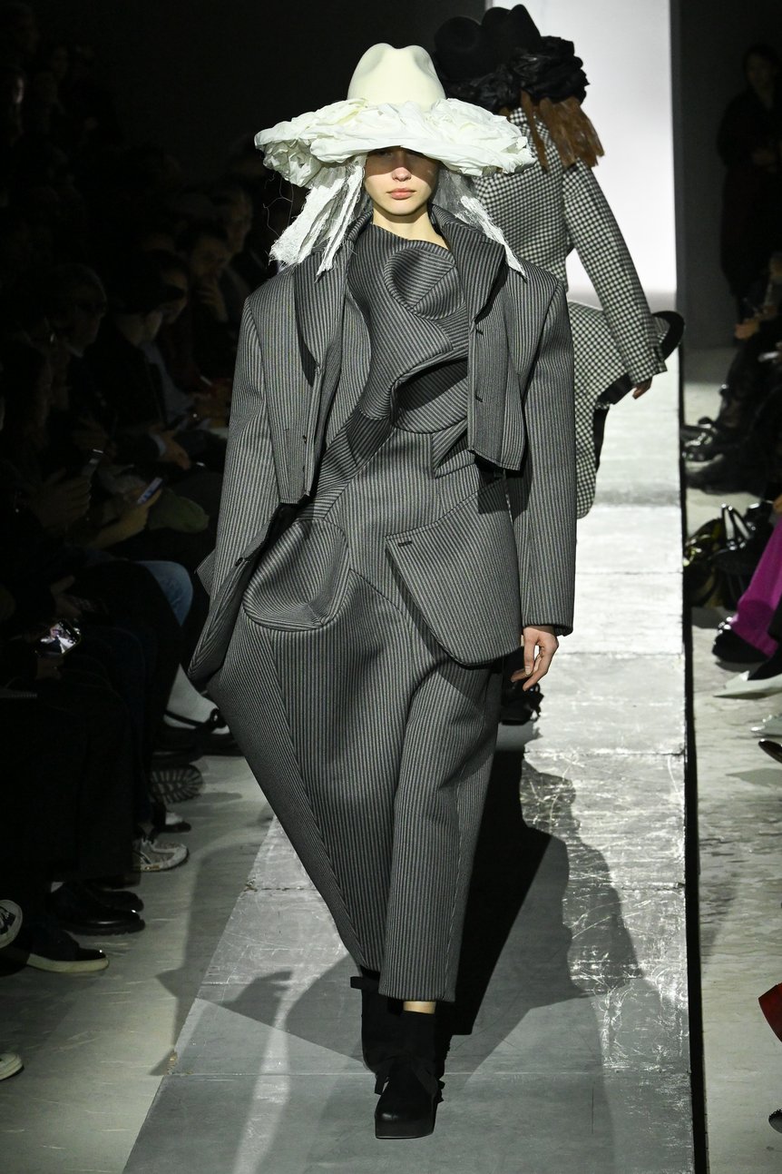 「コム デ ギャルソン(Comme des Gar?ons)」の2025年秋冬コレクションが、国際女性デーでもある3月8日に発表された。ブルガリアの女性民謡歌手たちの力強い合唱が空気を震わせる中、デザイナー川久保玲のメッセージが、アンリアルで異形な服を通して届けられた。