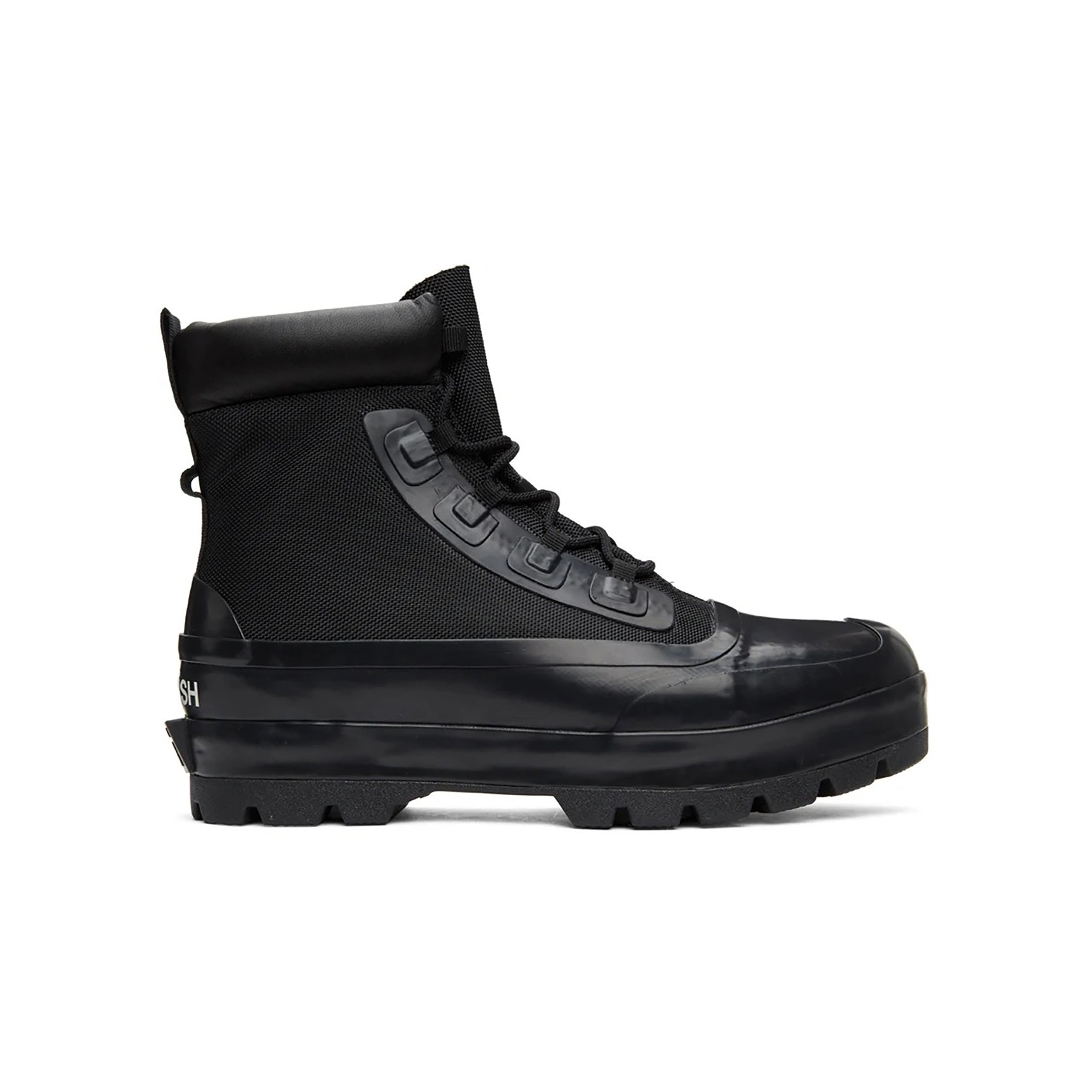 「アンブッシュ(AMBUSH?)」と「コンバース(CONVERSE)」によるスニーカーブーツです。ダックブーツ風ディテールのラバー製のシューズは、急な雨にも対応する実用性の高さも魅力。
