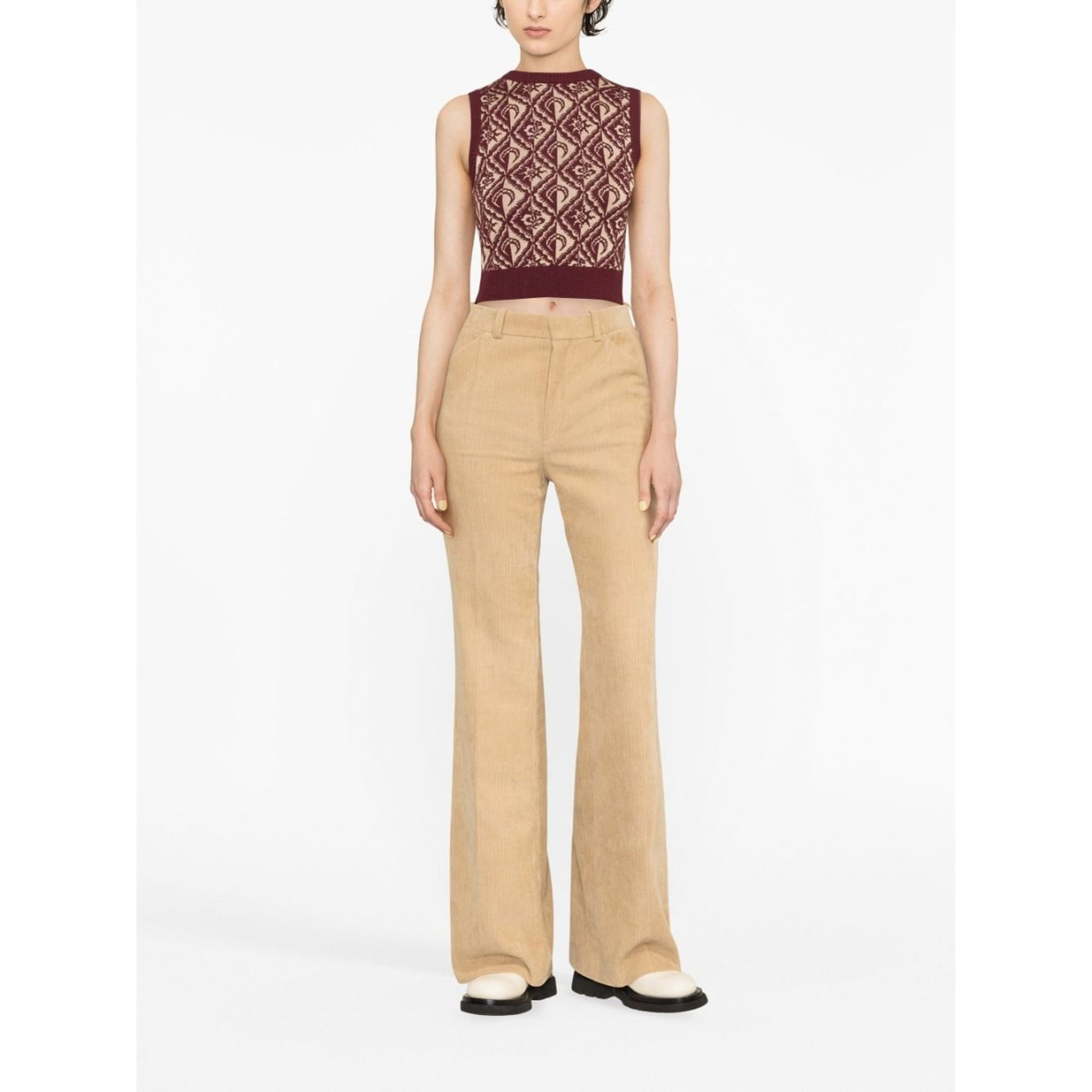 細かく編まれた、幻想的な模様に魅了される「マリーン?セル(MARINE SERRE)」のクロップドニット。すっきりとしたフォルムで着ぶくれせず、一枚でもシャツやインナーをセットしても◎。秋冬はジャケットを羽織り、リュクスでフォトジェニックなスタイリングを叶えてみてはいかが?