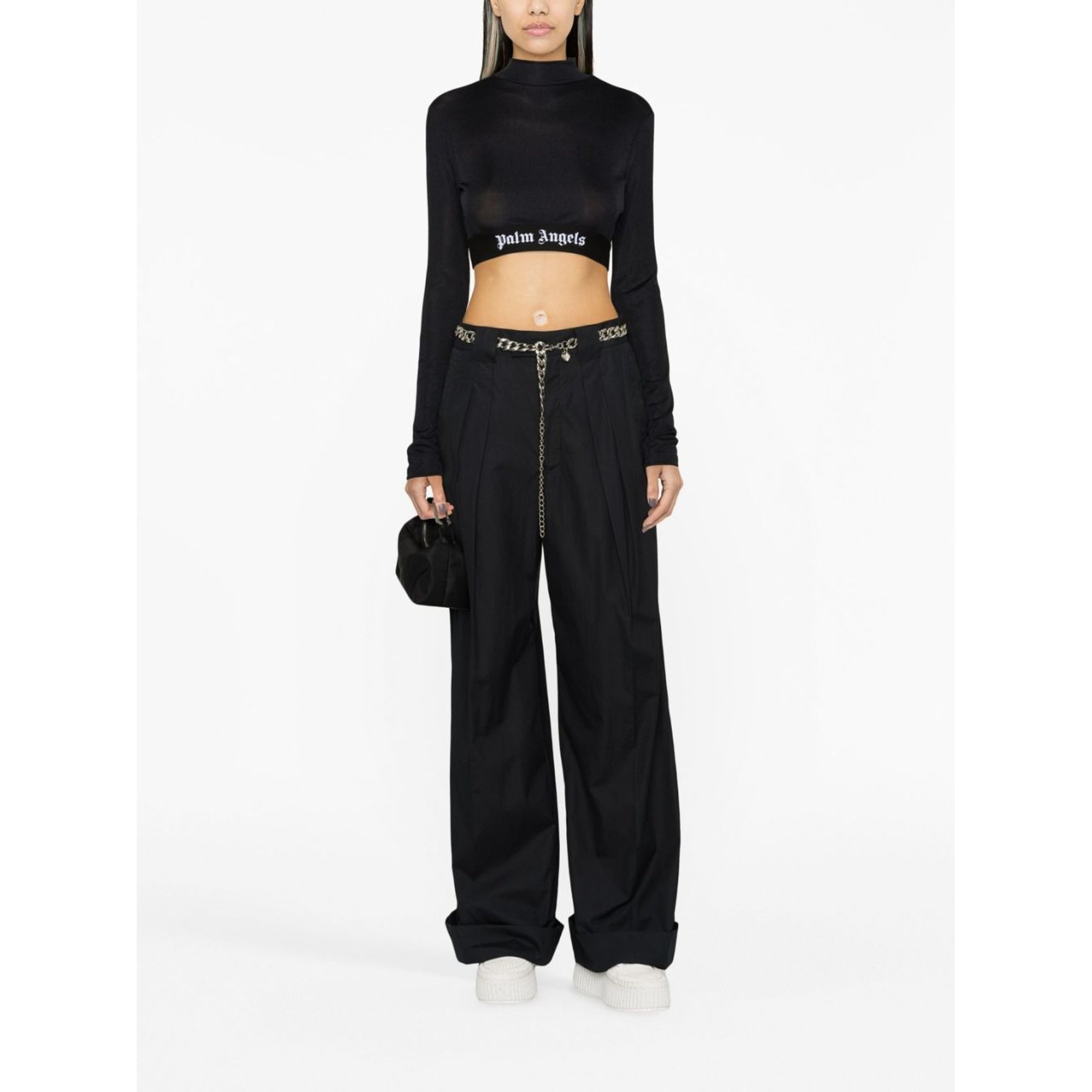 ストリートなトップスとしても、セカンドスキンとしても活用できる「パーム?エンジェルス(PALM ANGELS)」のクロップドトップス。ストレッチを効かせた生地は動きやすさと快適な着用感を実現し、モックネックで肌が見え過ぎる心配もなし。プルオーバーやパーカーとも合わせやすいアイテムです。