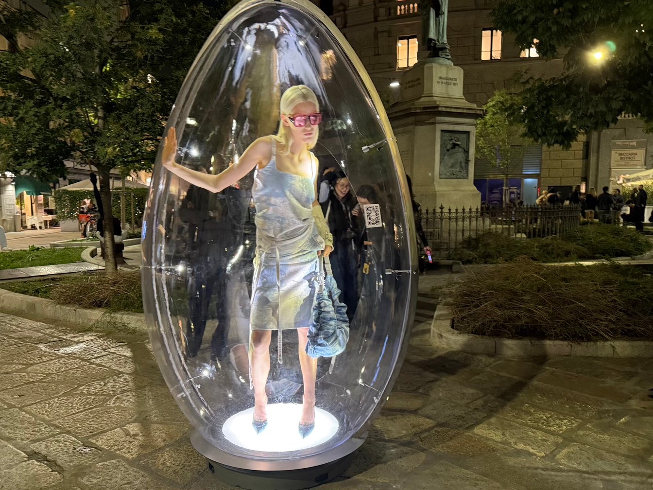 エッグ?ハントとは、春のイースター(復活祭)の時期に庭や公園などに卵を隠し、探して集める伝統的な遊びで、宝探しゲームのようなもの。今回の「ディーゼル?エッグ?ハント」はミラノ市の後援を受け、誰でも自由に参加できるイベントとして開催された。各スポットに設置されたモデルが入った卵型カプセルに併設したQRコードをスキャンしながらスタンプラリー形式で巡り、コレクションを楽しむことができる体験型ショーだった。