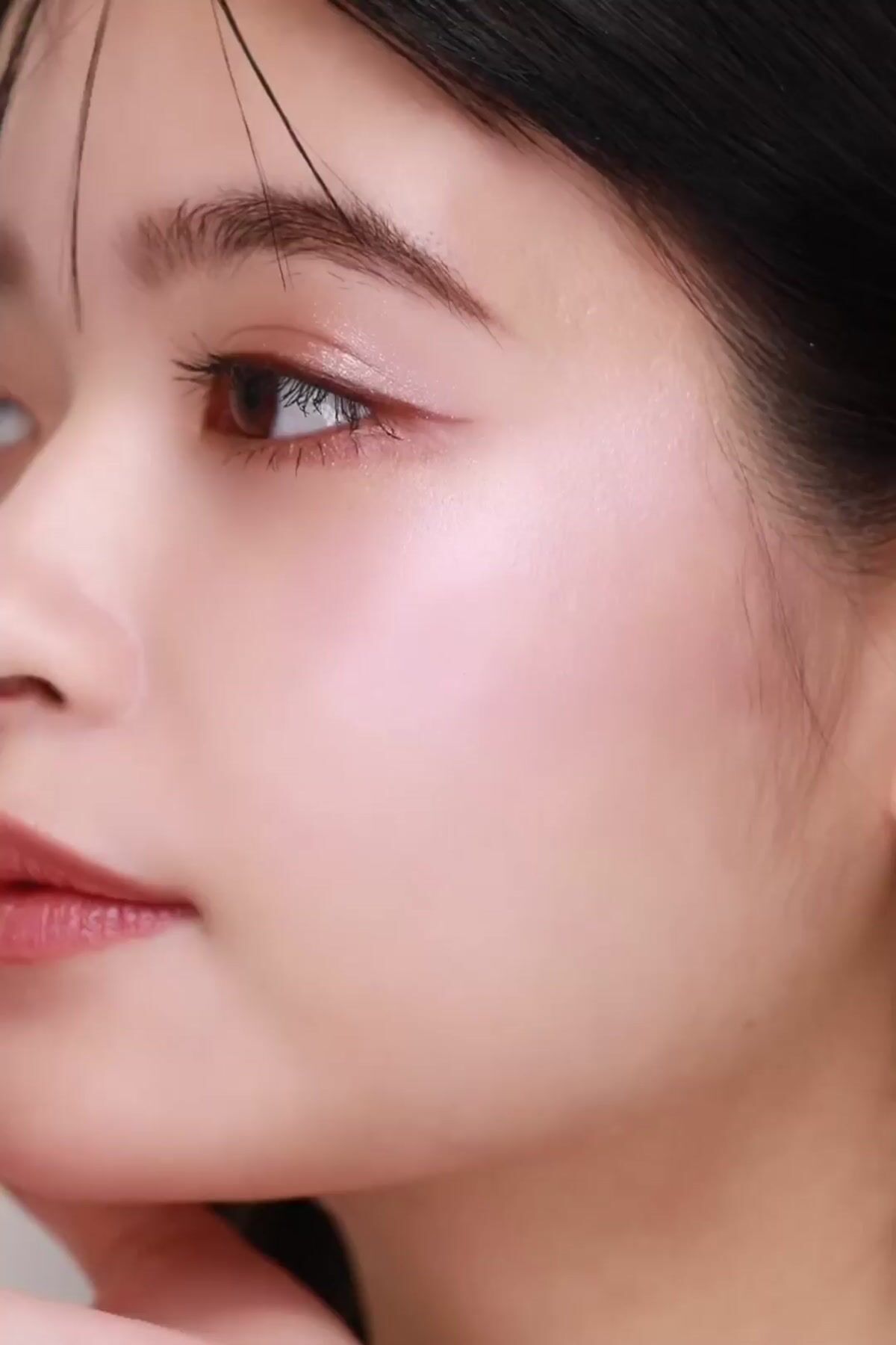 「ピンク」はチークに仕込むことで、自然は発色感を。ひと塗りで、みずみずしく上気したような頬を叶えます。「肌の内側の血色が透けているようにナチュラルな仕上がりです。より自然に見せたい時のニュアンサーとして取り入れると良いと思います」(小倉)。光を集めるハイライトの効果と相まって、立体感と透明感が1本で叶います。