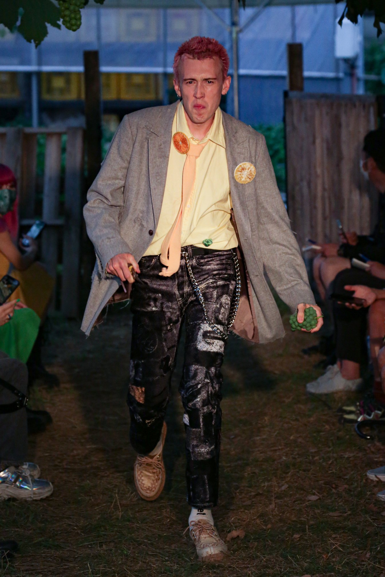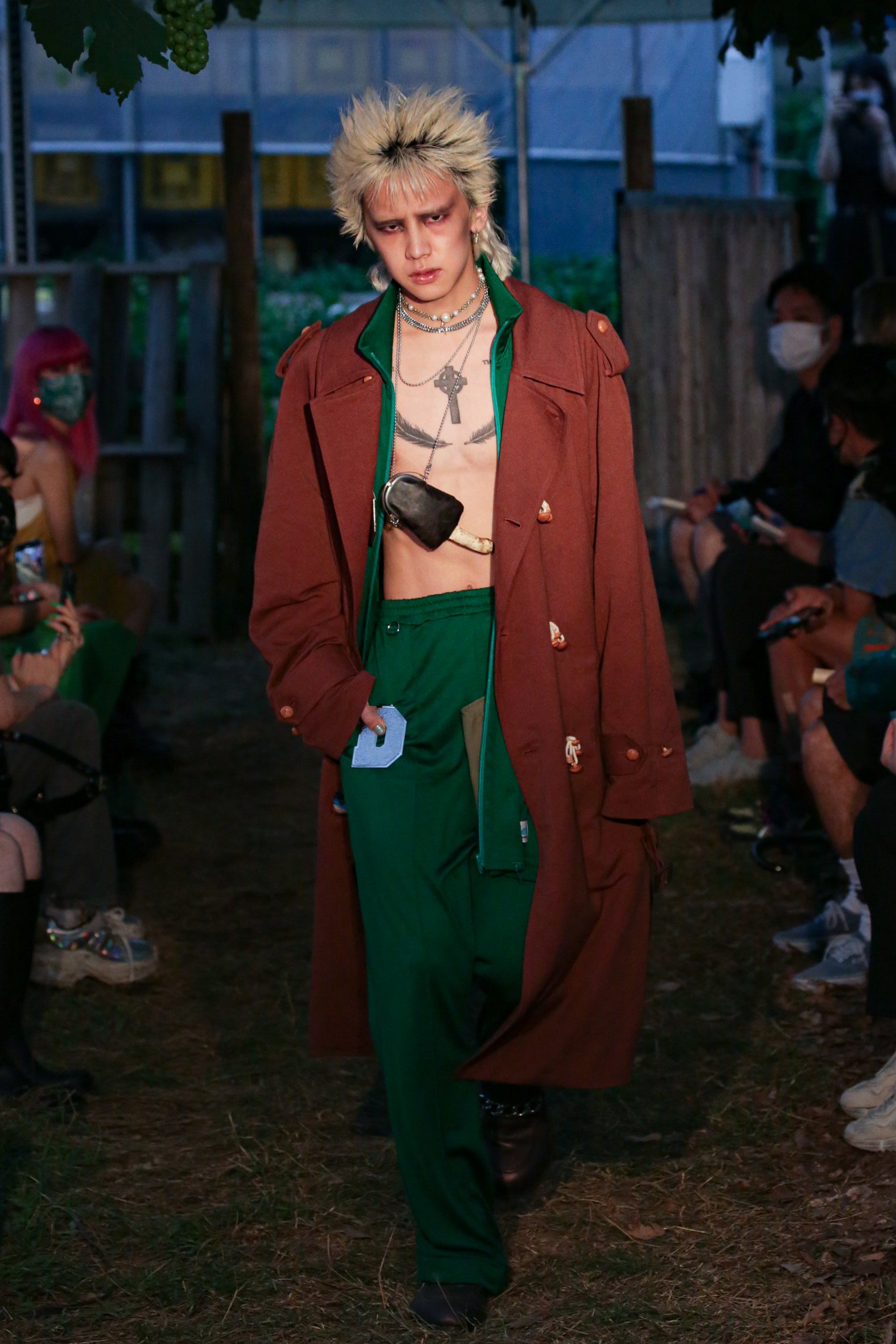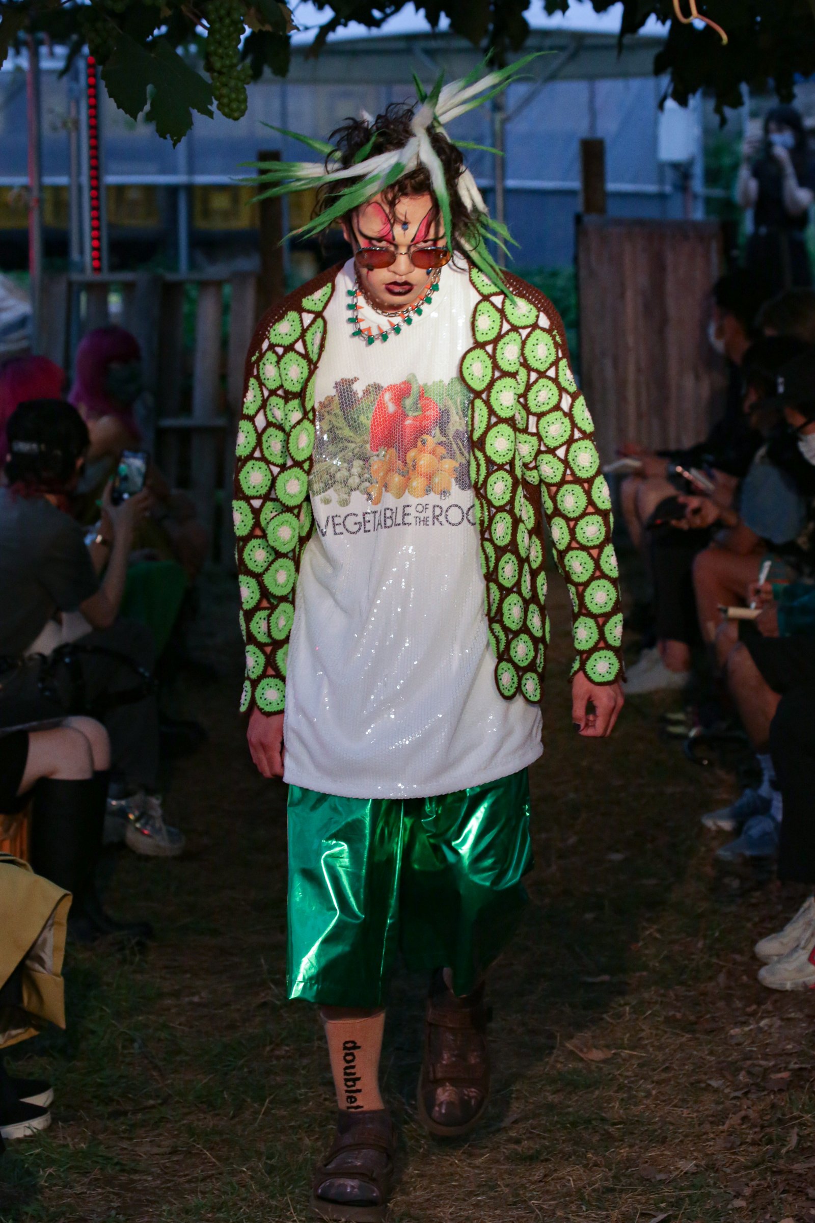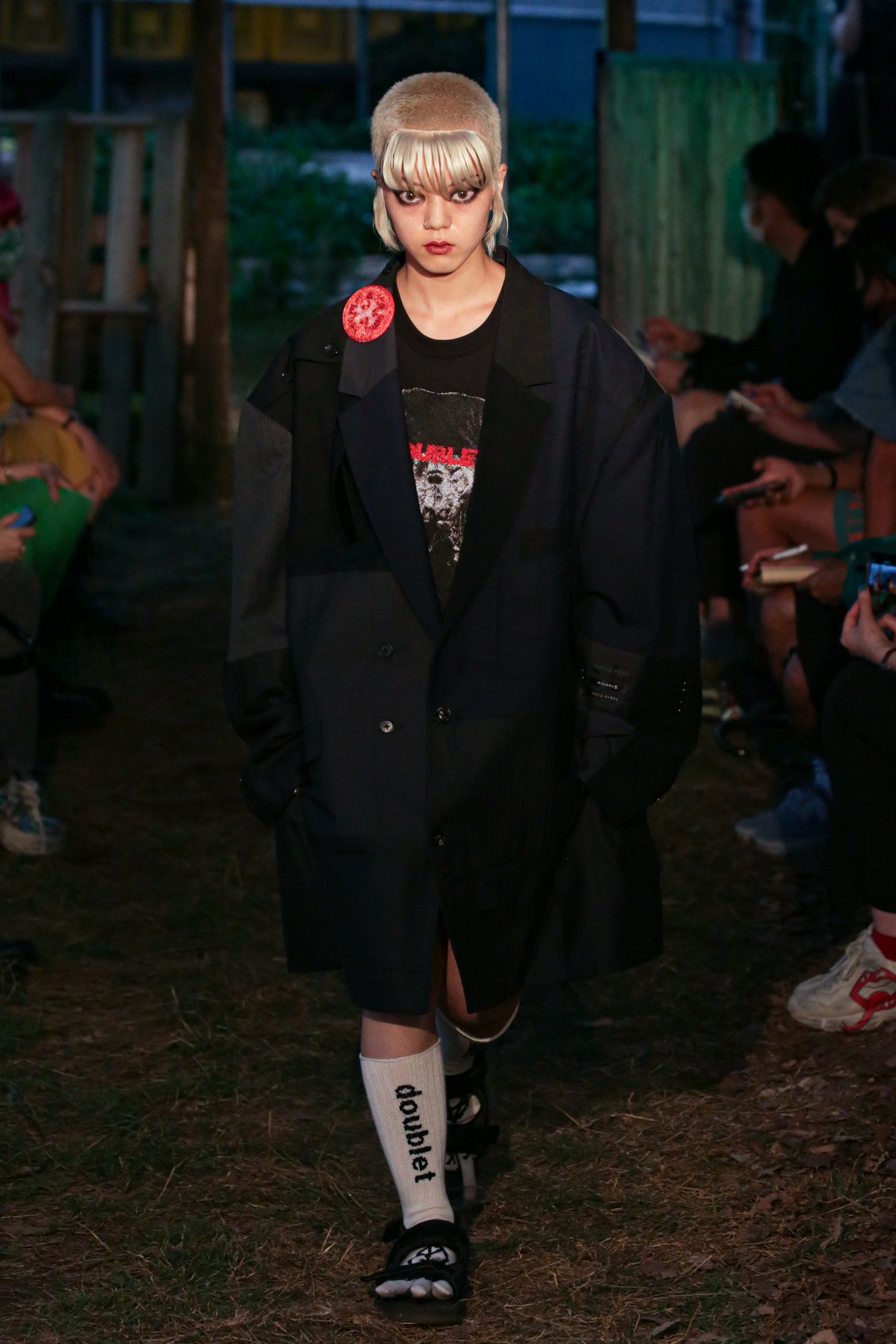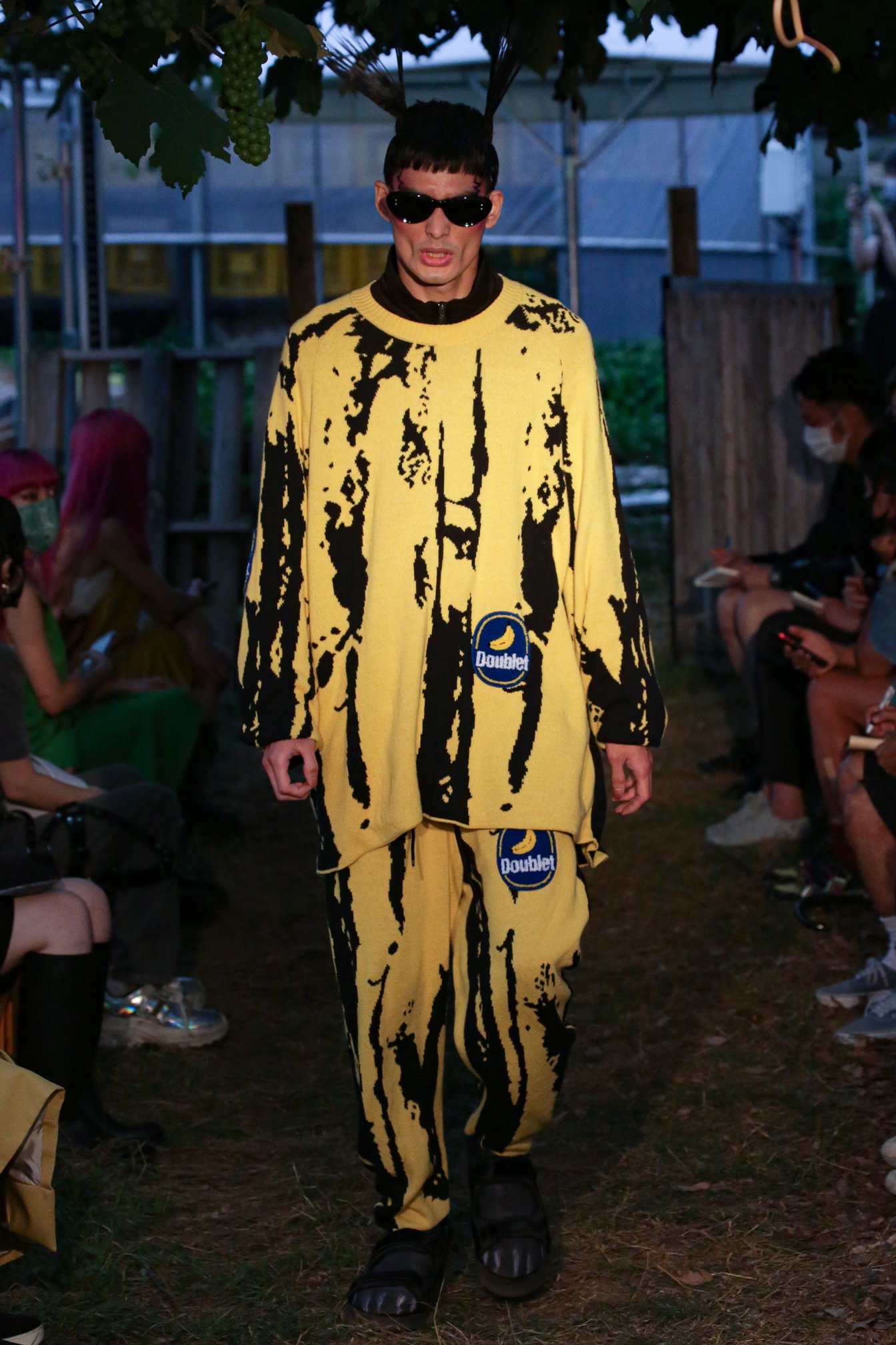 ほのぼのとした農園風景を切り裂く爆音の中、「ダブレット(doublet)」が2022年春夏コレクションのショーを開催。パリ?メンズファッションウィークの公式日程に合わせ、ショー映像をライブで配信した。