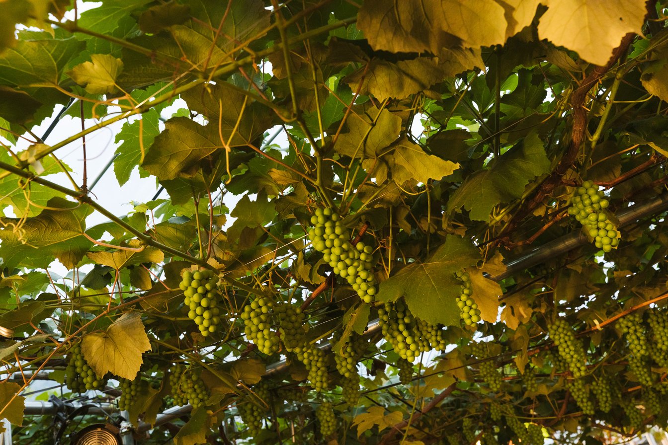 場所は三鷹オーガニック農園。3匹のヤギが来場者を迎え、青い実をつけるぶどう棚の下がショー会場となった。収穫用のコンテナが座席代わりで、BGMとしてスイス民謡のヨーデルが流れている。