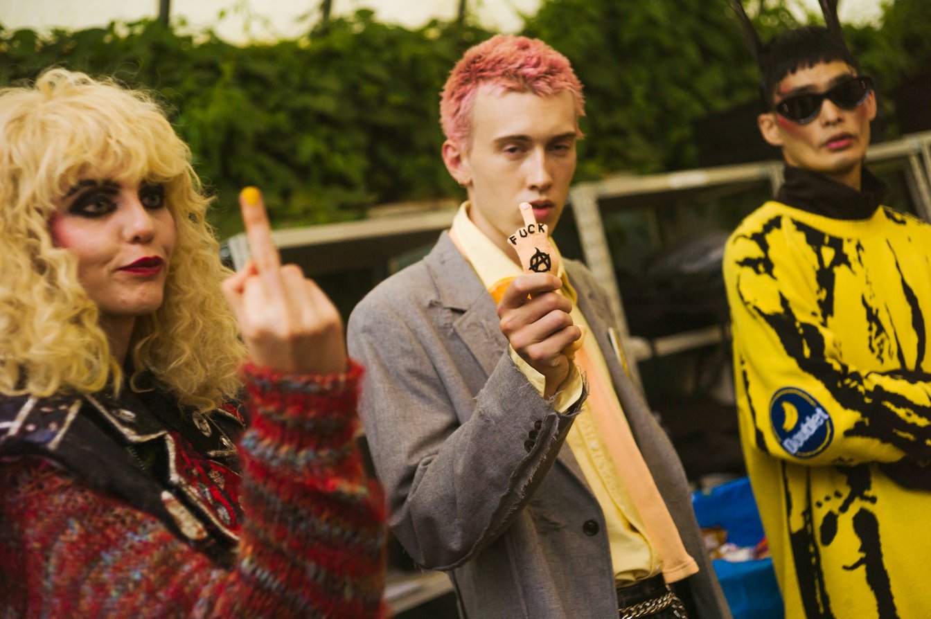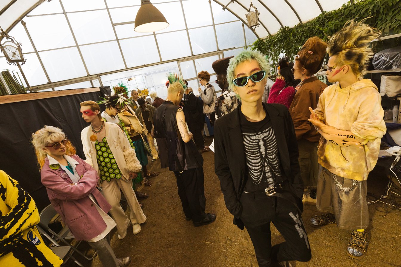 スタート時刻になるとサイバーなライトが光り、流れ出したのは激しいパンクロック。のどかな農園とのギャップが意表を突く演出の中、1970年代のロンドンパンクのアイコンであるシドとナンシーのような風貌のモデルらが登場した。