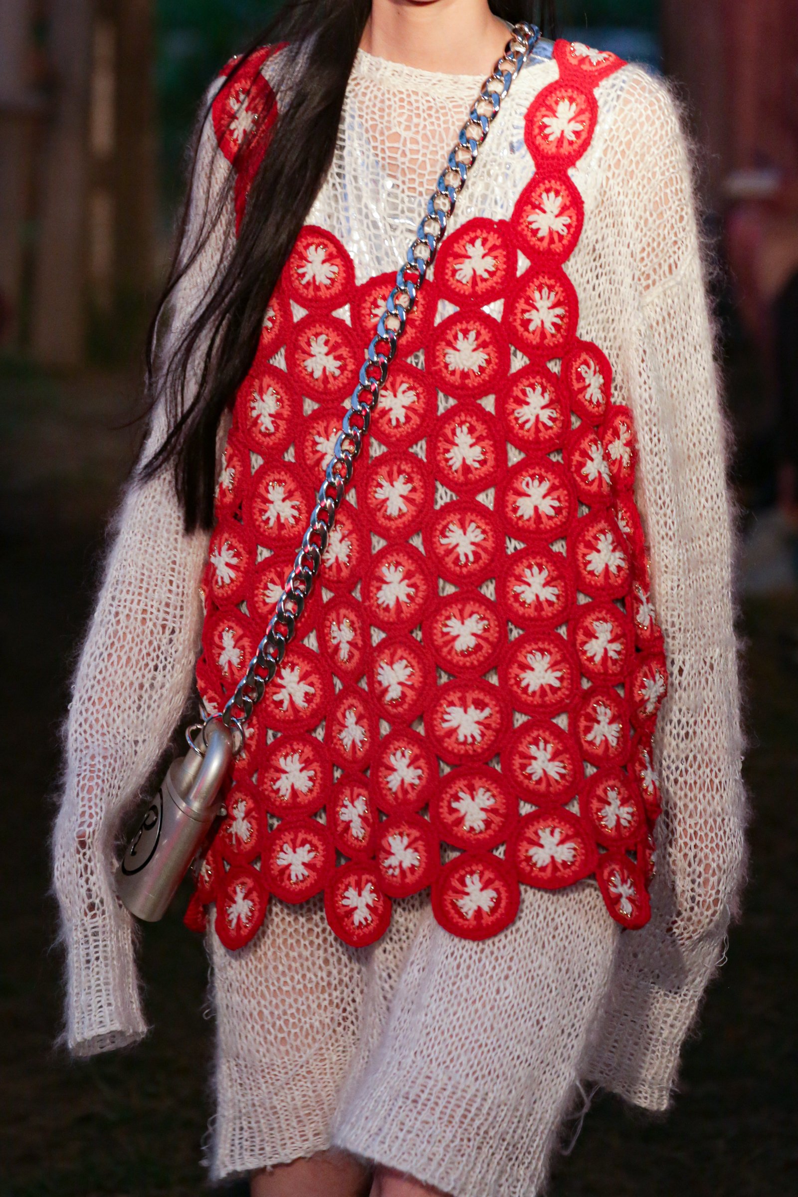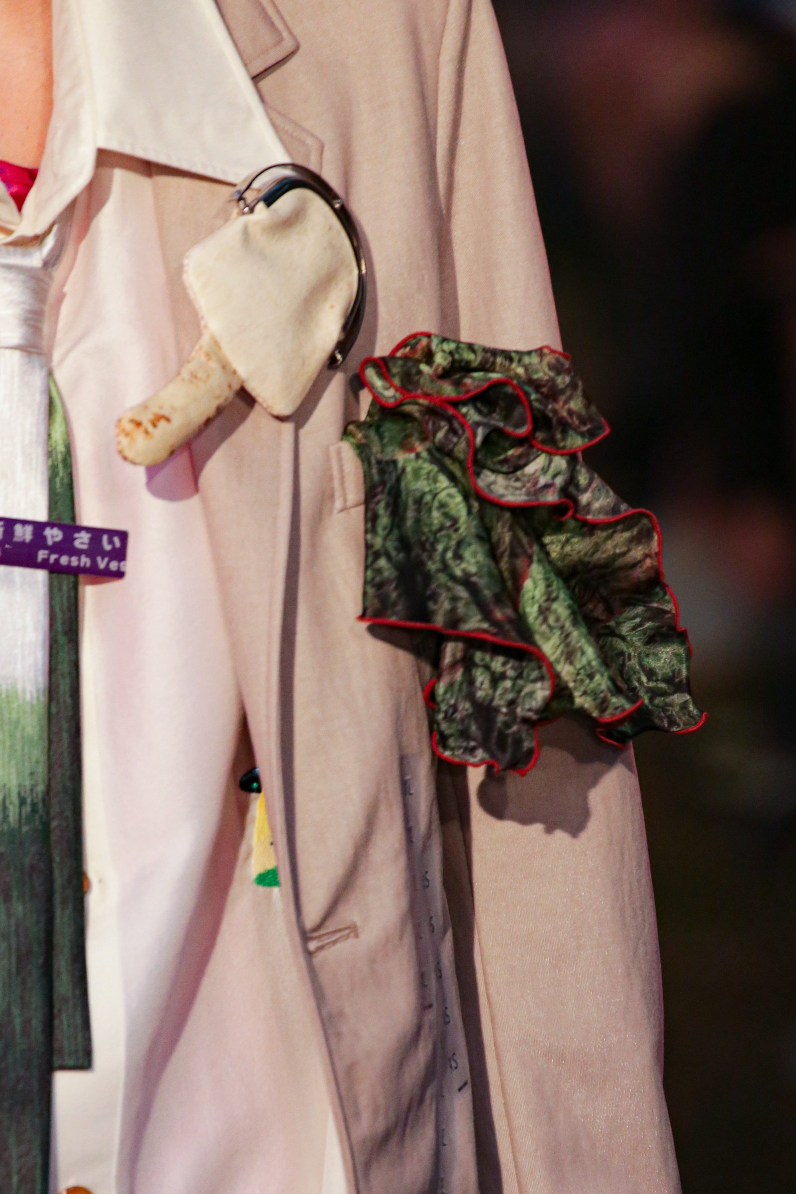 デザインモチーフにも果物や野菜が多く用いられている。キウイやトマトのクロシェ編みや、「VEGETABLE OF THE ROOM」と書かれたプリントTシャツがユニーク。玉ねぎの外皮の成分を使ったナイロン製のボンバージャケットには玉ねぎをプリントした。