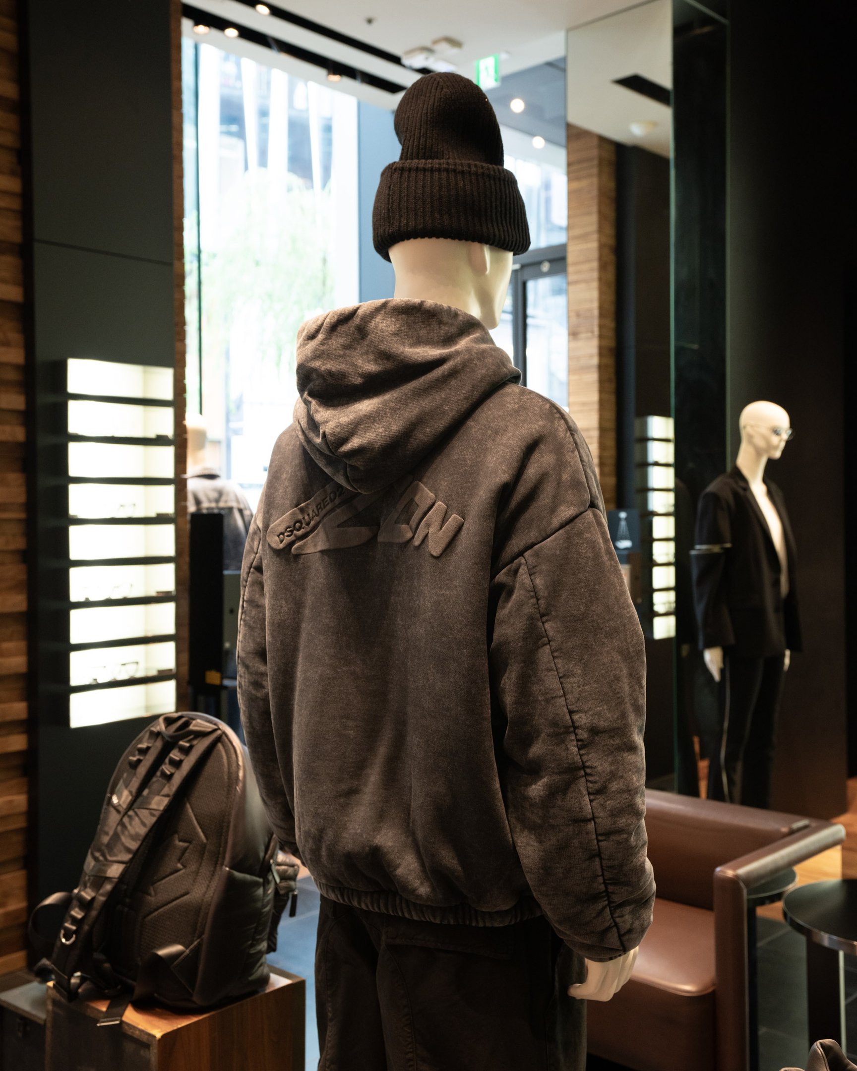 新コレクション「アイコン ニュー ジェネレーション」は、メンズとウィメンズ、ユニセックス、そしてキッズアイテムをラインナップ。メンズは、キャメルのテディフリースのパーカ(17万7100円)やハーフパンツ(10万1200円)など。このほか、ここでしか手に入らない東京店限定のパーカ(26万7300円)を販売している。ブリーチ加工を施したジャージー素材を使った中綿入りのボリュームシルエットで、バックスタイルの"ICON"ロゴも印象的だ。