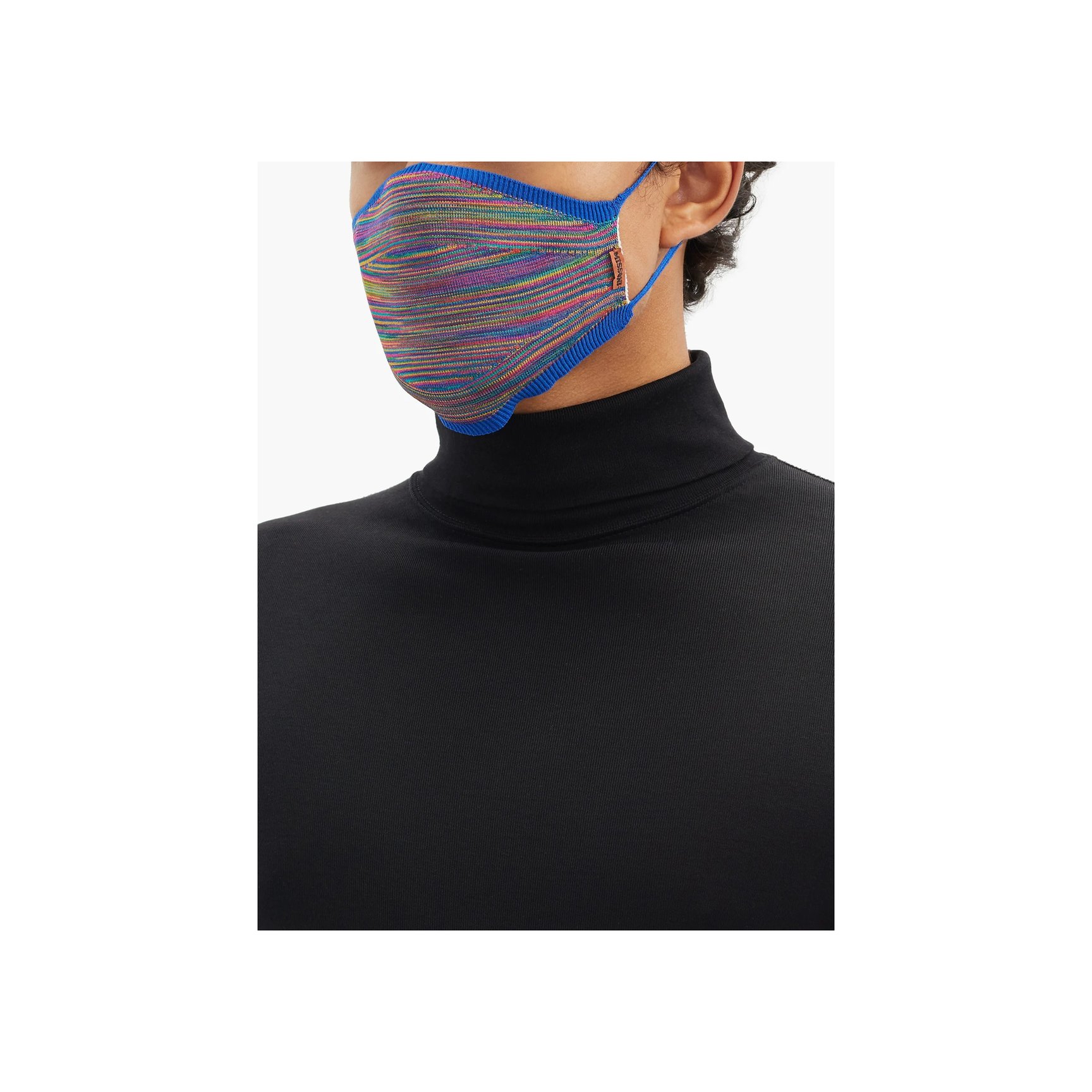 こちらは、色鮮やかな「ミッソーニ(MISSONI)」のマスク。糸を染色してから編み上げる技法で生まれたスペースダイストライプは、「ミッソーニ」ならではのシグネチャーパターンです。ニットで肌触りも◎。