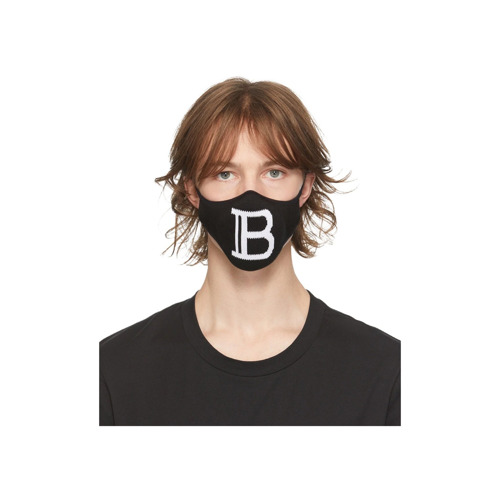 「バルマン(BALMAIN)」のマスクは、ブランドの頭文字である大きな「B」の編み込みが目を引きます。ストレッチ性の高いコットン製です。こちらは売上の100%が新型コロナウイルス感染対策の活動に寄付されるアイテムだそう。