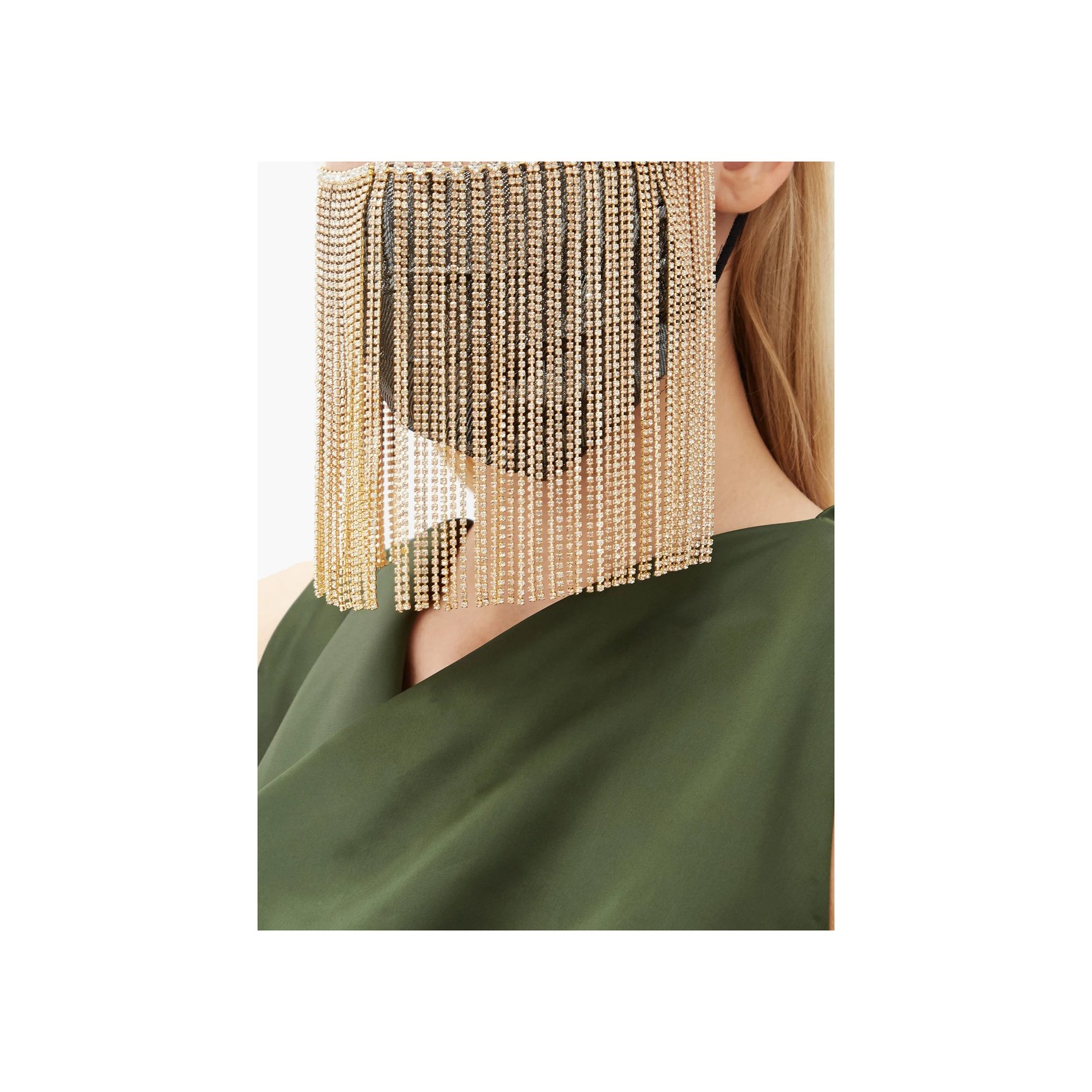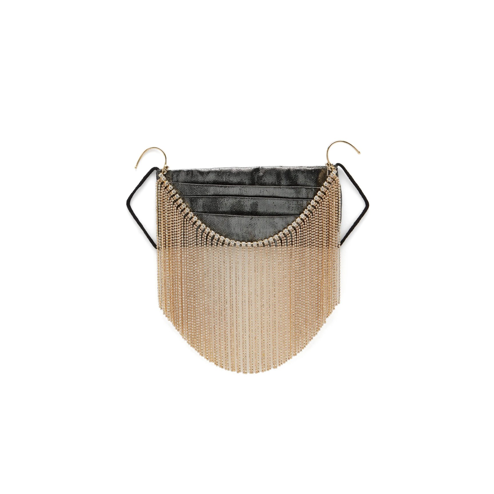 パーティースタイルにもぴったり?!「ロザンティカ(Rosantica)」のマスクは、無数のクリスタルをあしらったゴールドフリンジが顔周りできらめくゴージャスなアイテム。アクセサリー無しでも顔周りを華やかにしてくれます。フリンジは取り外し可能なので、メタリックブラックのシンプルなマスクにもなる2WAY仕様です。お値段も驚きのラグジュアリープライス。