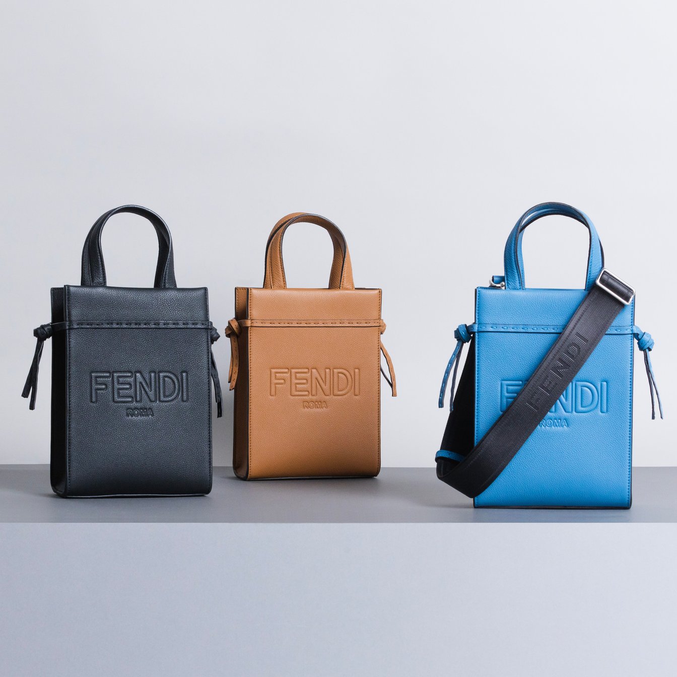 グレインレザーに「FENDI」のロゴを型押しした縦型ミニショッパーバッグ。ハンドステッチを施したレザーノットがクラフトマンシップを感じさせるアクセントに。また、ナイロン素材のストラップを取り付けると、一味異なるハイブリッドな風格に変身。ハンドバッグとしても使え、メンズ?ウィメンズ問わないデザインです。