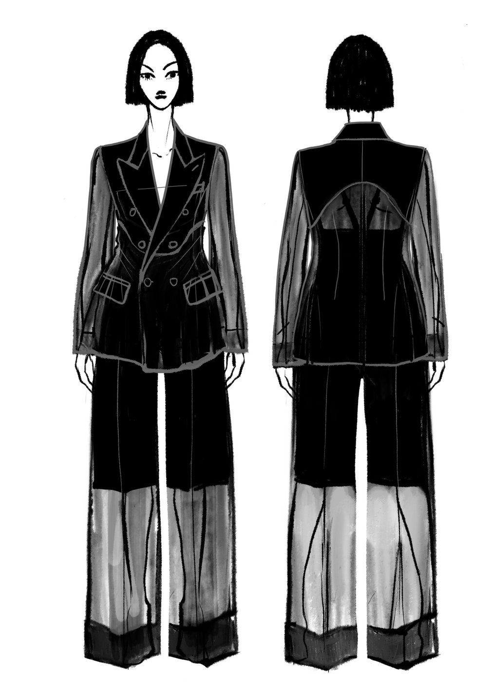 基本的には私がデザイン画を描き、特にあまり細かい指示もせずに彼女に渡します。高濱がデザイン画を基にトワルを作り、2人でジャッジをする。これを何度も繰り返して作り上げていきます。製作において他のブランドと異なる点があるとするならば、毎シーズンコレクションルックのスタイリングをお願いしているスタイリストの山口翔太郎にもトワルチェックをお願いしている点でしょうか。