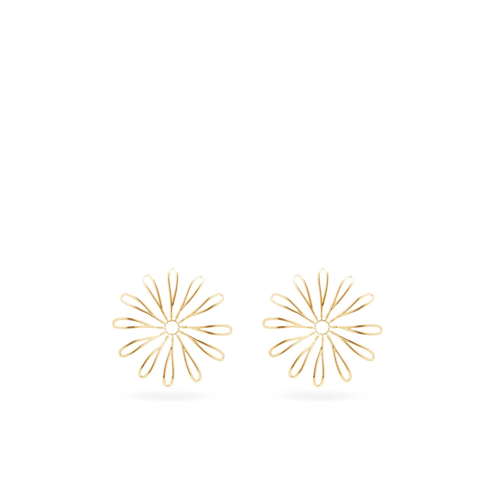 ワイヤーを曲げてつくったような、ミニマルな造形の「ジャックムス(JACQUEMUS)」のフラワーピアス。シンプルな造形だからこそ映えるオーバーサイズです。