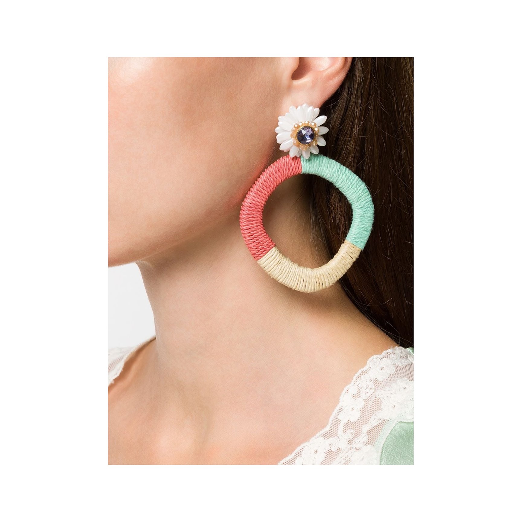 バルセロナ発の「メアリージェーン クレイヴロル(MARYJANE CLAVEROL)」は、カラフルな色づかいが魅力です。耳元のクリスタルの輝きと、糸を巻きつけたフープ部分の質感とのコントラストを楽しんで。