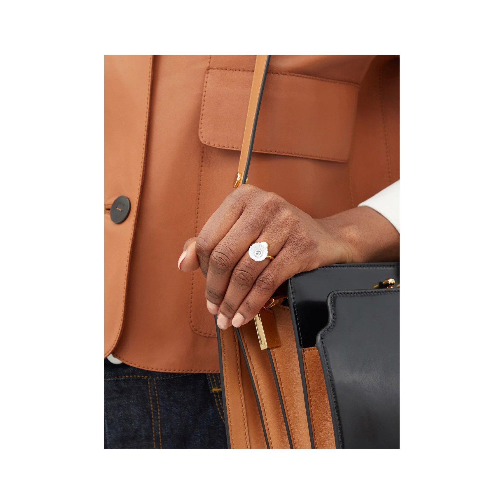 クリスタルをあしらったデイジーのモチーフ付きの「マルニ(MARNI)」のリングは、指にぐるりと巻き付くようなシェイプも個性的です。