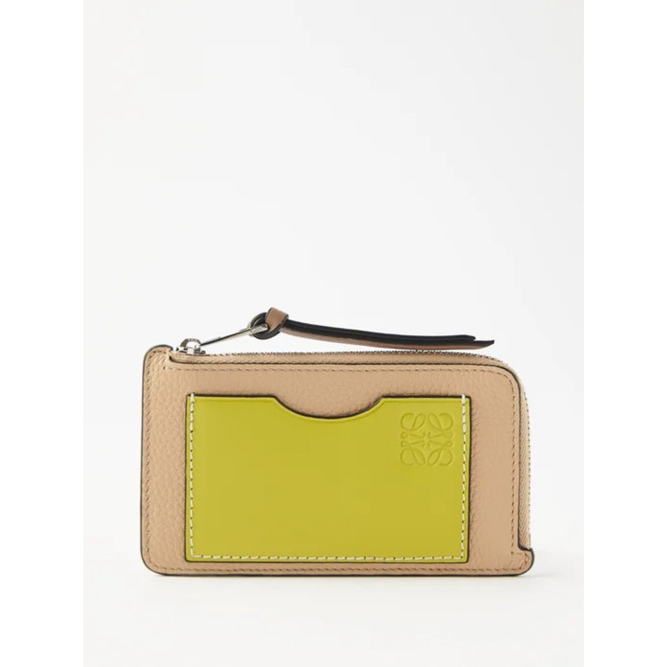 淡いピンクとイエローのバイカラーが可愛いこちらは「ロエベ(LOEWE)」のもの。アナグラムロゴの型押しがアクセント。シボ感のあるレザーの表情に高級感が漂います。デザインも使い勝手も申し分なし。