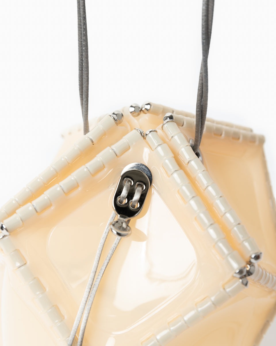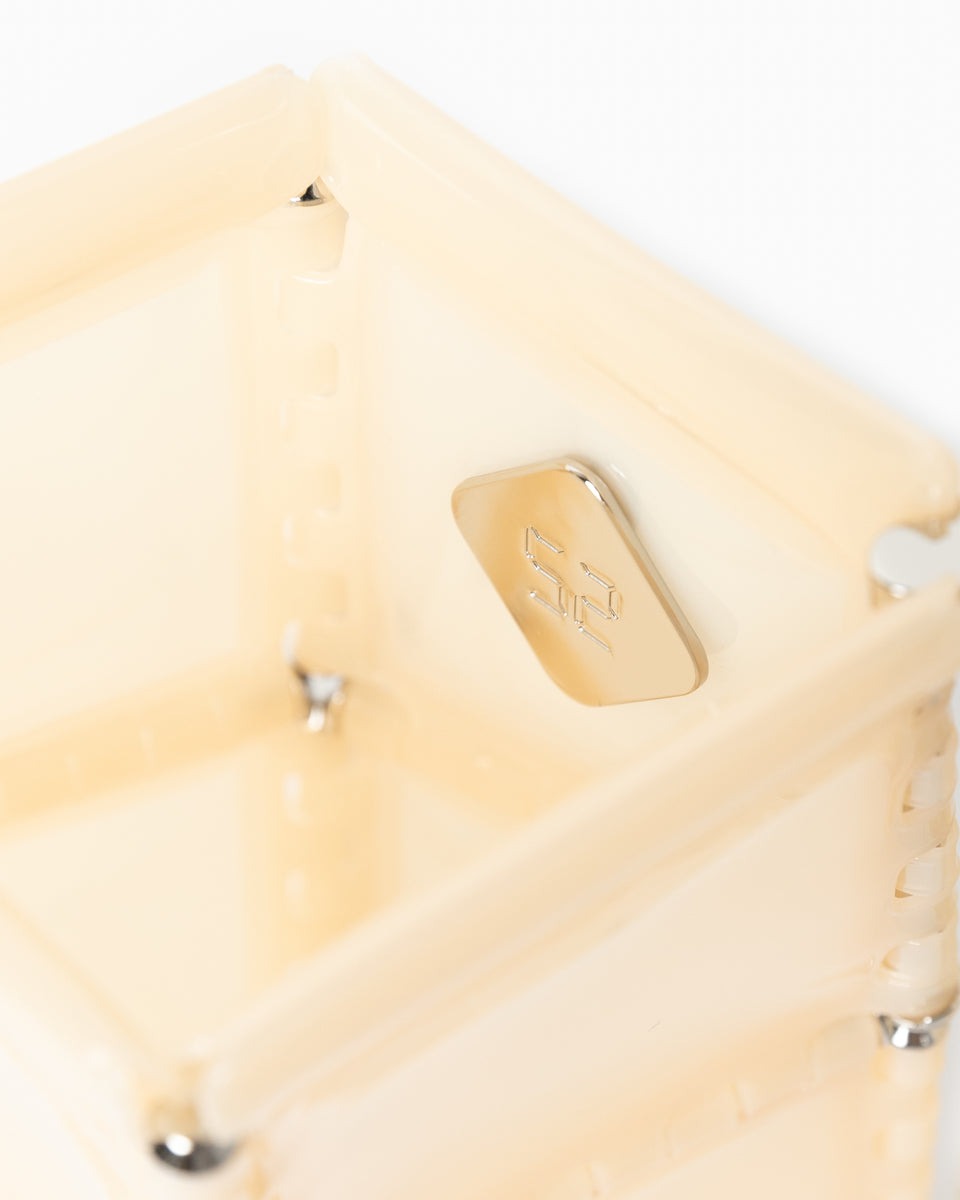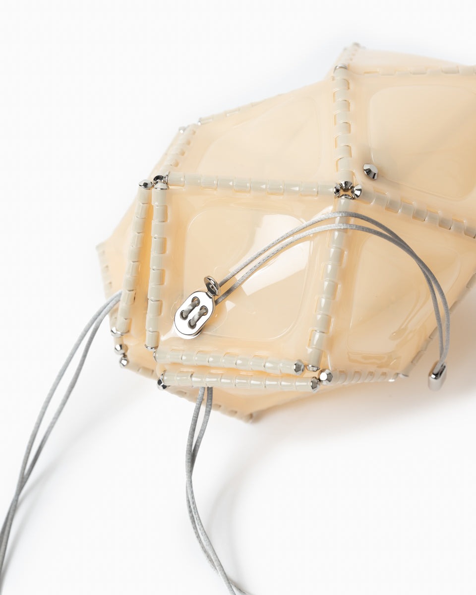 同じく52 バイ ヒカルマツムラ(52 by HIKARUMATSUMURA)」のアイコンバッグ。構造的に最も安定する円筒型で構成されており、立体感のあるキャッチーなフォルムがポイントです。光の反射を美しく作り出すエレガントなデザインで、カジュアルからドレッシーなスタイルにまで合わせられるアイテムです。