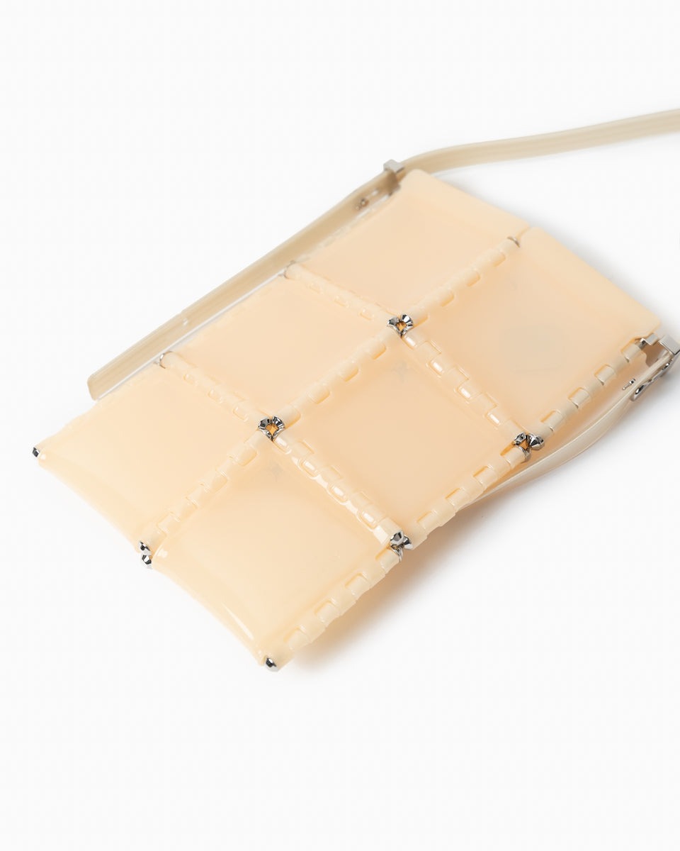 「バオ バオ イッセイ ミヤケ」のデザインを担当した松村光が立ち上げた「52 バイ ヒカルマツムラ(52 by HIKARUMATSUMURA)」のポケットバッグ。ミニマルな四角のモチーフを独自のジョイントシステム組み合わせたデザインです。携帯とお財布だけで身軽に出かけたいときにおすすめなバッグです。