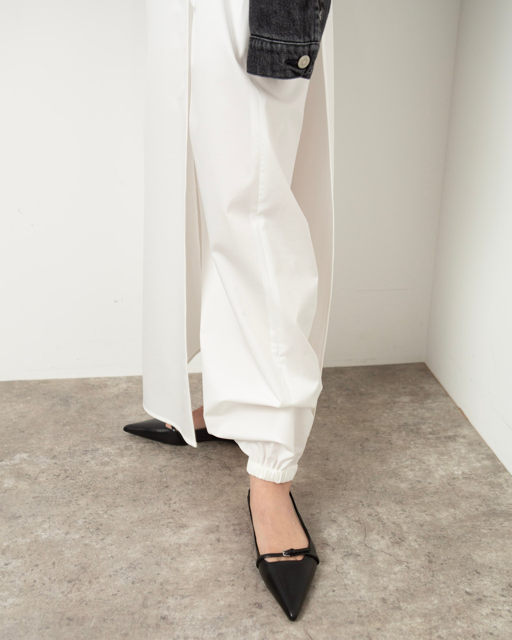 緩急あるシルエットが魅力的、「ミオズモーキー」のドローストリングパンツ