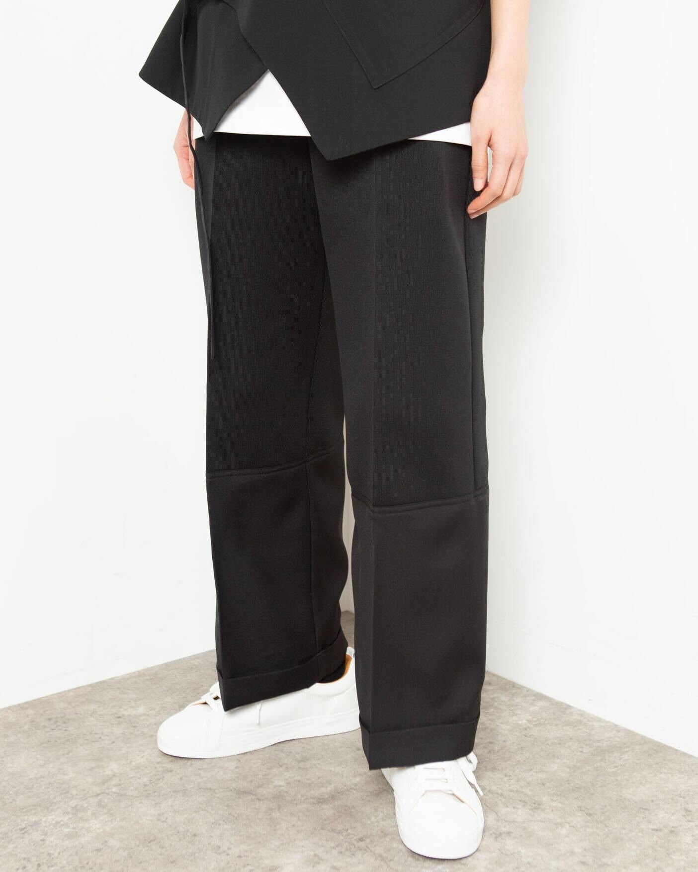 存在感のあるベルトと膝のスリッドが特徴的なこちらのボトムスは「チノ(CINOH)」から。生地はアセテート100%ですが、しっかりと厚みがあるつくりなのでワイドなシルエットを綺麗に保ってくれます。光沢感のある素材になっており、上品さと大胆なデザインのバランスが魅力的なアイテムです。トップスはタイトなセカンドスキントップスなどと合わせるとバランスが取りやすいのでおすすめ。