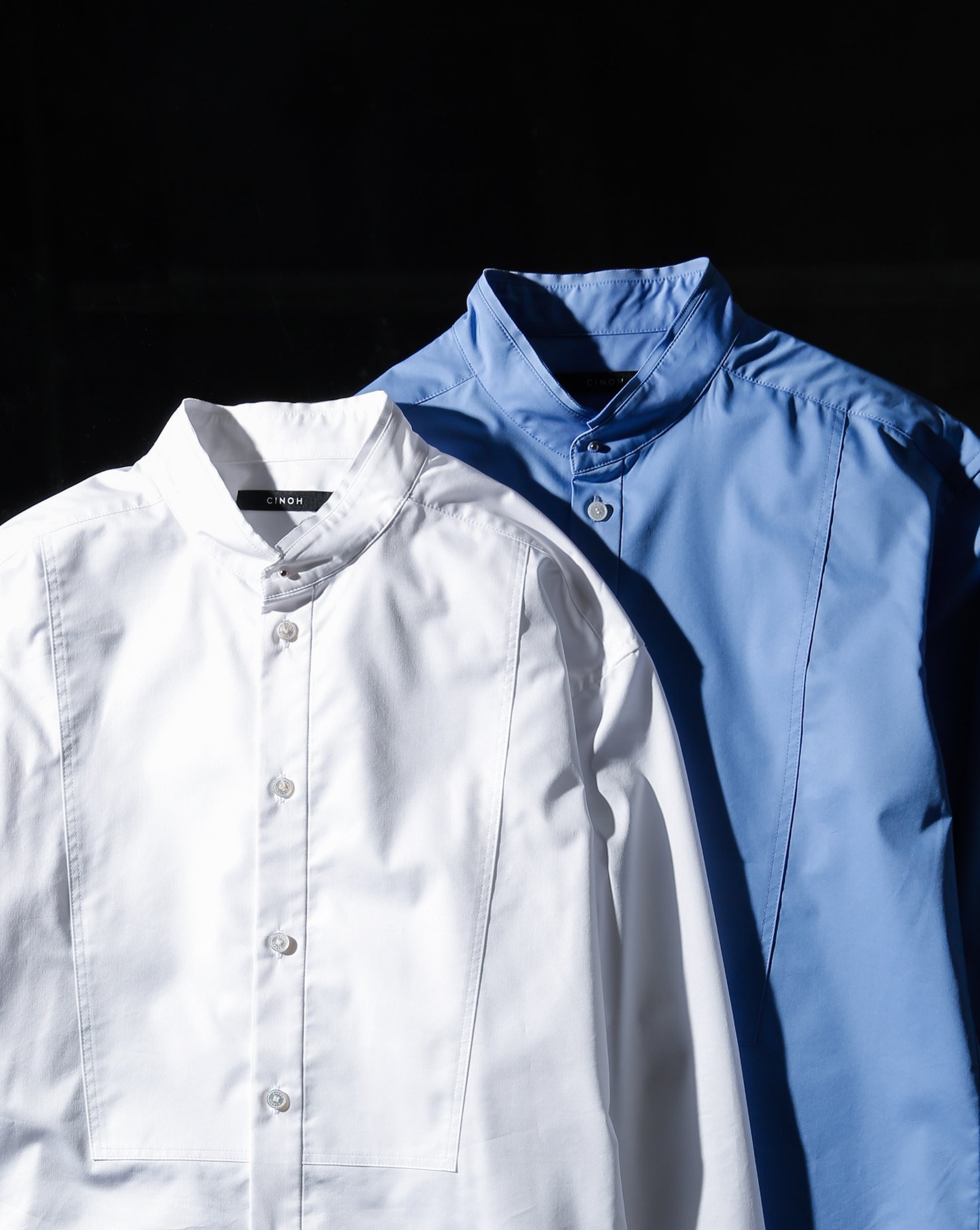 「ビューティフルピープル(beautiful people)」からは、紳士服の礼装を元にデザインされたタキシードシャツをチョイス。オーバーサイズが主流の今では珍しい、コンパクトなシルエットはいつもと違った雰囲気のスタイルにしてくれます。生地は英国王家御用達のシャツ生地メーカであるトーマスメイソン社のものを使用し、艷やかで高級感溢れる1枚に。