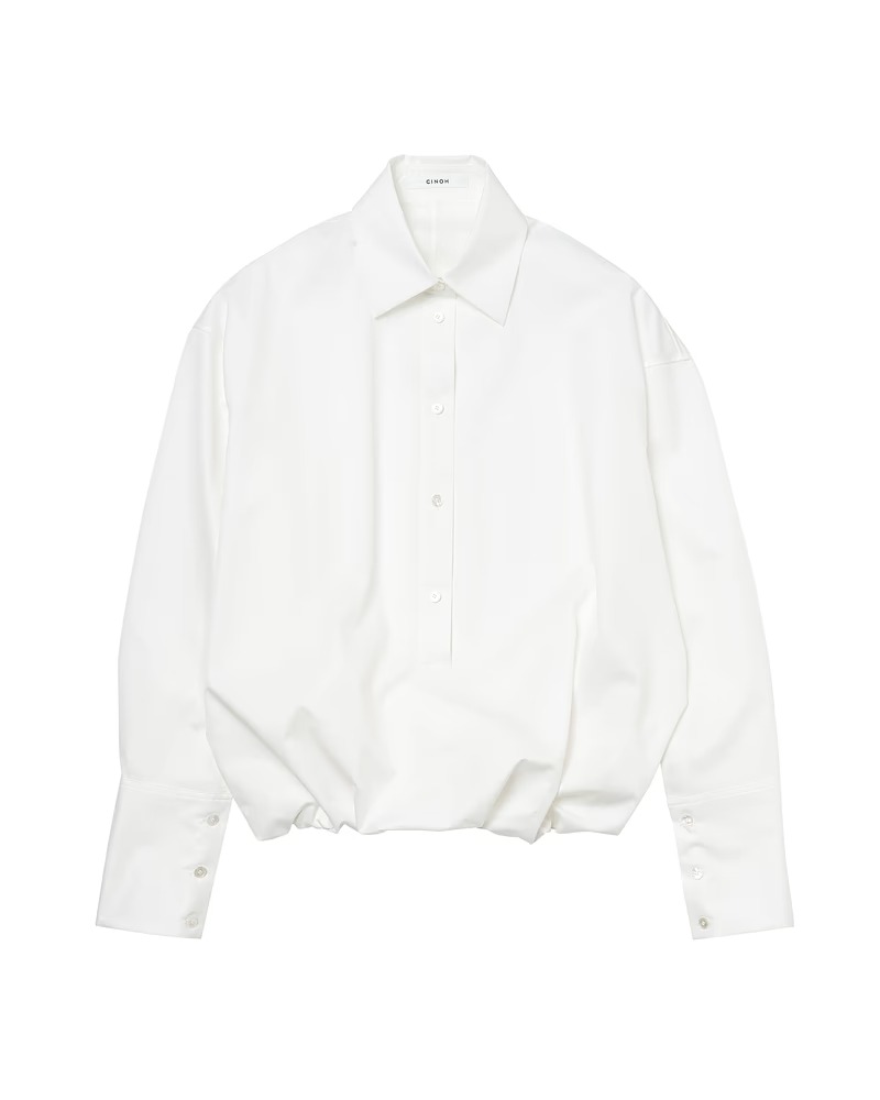 クラシカルかつドレッシーなディテールを取り入れた端正なドレスシャツをベースに、プルオーバーのデザインを採用することで、日常使いしやすいカジュアルなシャツへとアップデートした一着。裾に仕込まれたゴムにより生まれる生地のドレープと丸みのあるシルエットを堪能できる一枚は、クリーンかつミニマルな佇まいながブランドらしい独自のエッセンスを感じさせるアイテムです。合わせるボトムスを選ばないホワイトとモードなブラックの2色展開。