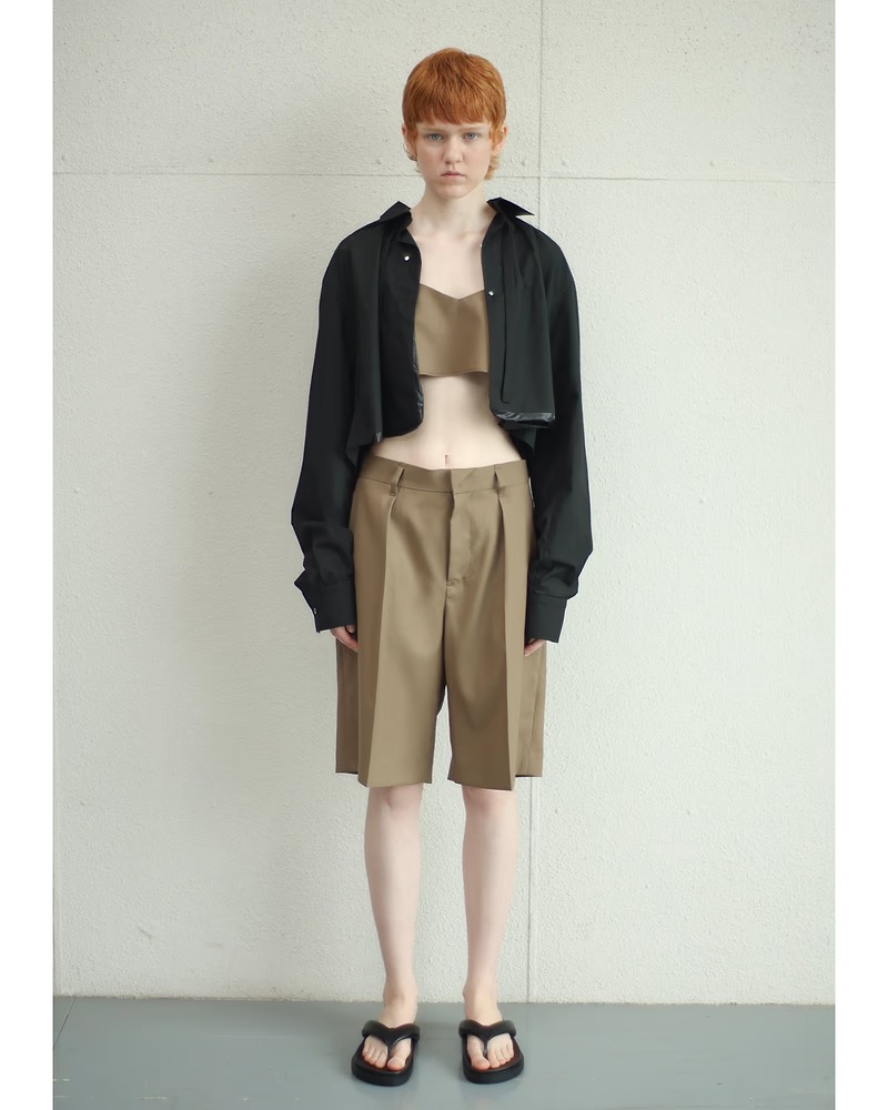 スーツの組下を彷彿とさせる、ヒダの広がりが少なくスマートなラインのシルエットを描くインタック仕様と上品なウール地で仕上げた「NTN」らしいショートパンツ。カジュアルになりがちなショートパンツを、ミニマルに構築されたデザインと上品な生地感で、クラシカルかつモードに仕上げた一本です。