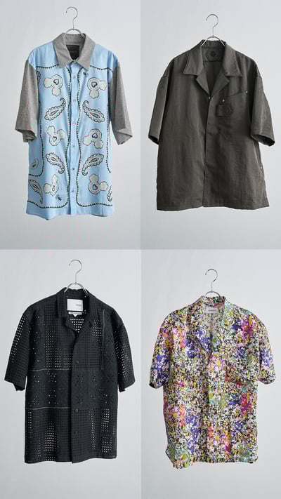 デザイナーが花屋に立ち寄った時に偶然見かけた“結露したガラス越しに見た花”を切り取り、柄として全面に落とし込んだ「ヨシオクボ(yoshiokubo)」。コットン特有のナチュラルな風合いに抽象画のような幻想的なプリントが映える一本は、総柄ながら落ち着いたトーンなのでスタイリングに取り入れやすく、夏の着こなしの主役を担ってくれます。