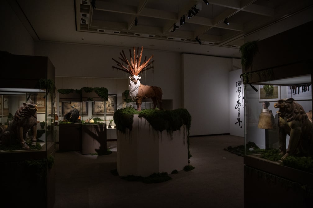 吉本:個々の作品自体が、アニミズムというテーマに何かしら結びついていることを前提に選定されていますので、展示装飾は石や苔といった身の回りにある当たり前のものをモチーフにして、自然の中にいる空気感を感じられるようなイメージで作りました。装飾と展示作品の境界線がわからない状態、揺らいでいる状態にすることで、作品からより神秘性を見出すことができる空間になったのではないかなと。色々な切り口から観ることができるので、様々な解釈や面白さを見つけて頂きたいですね。