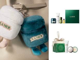 モノグラムデザインのジャガードバニティと、5つの人気製品のセット。メイクアイテムからフレグランスまでさまざまな製品が1度に試せます。