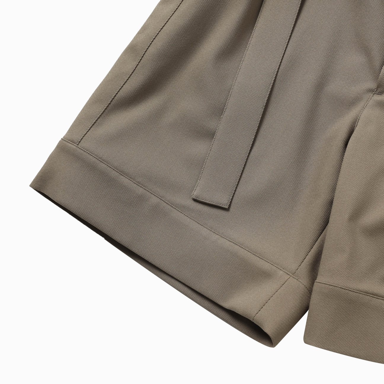 「ウジョー」からはベルトハーフパンツをご紹介。主にコートなどに使われるギャバジンに樹脂加工を施した素材は、光沢感となめらかな肌触りで高級感が漂います。フロントにはセンタープレスが入っており、ドレッシーな印象に。シャツジャケットとローファーを組み合わせてトラッドなスタイルを楽しんでみてはいかがでしょうか?