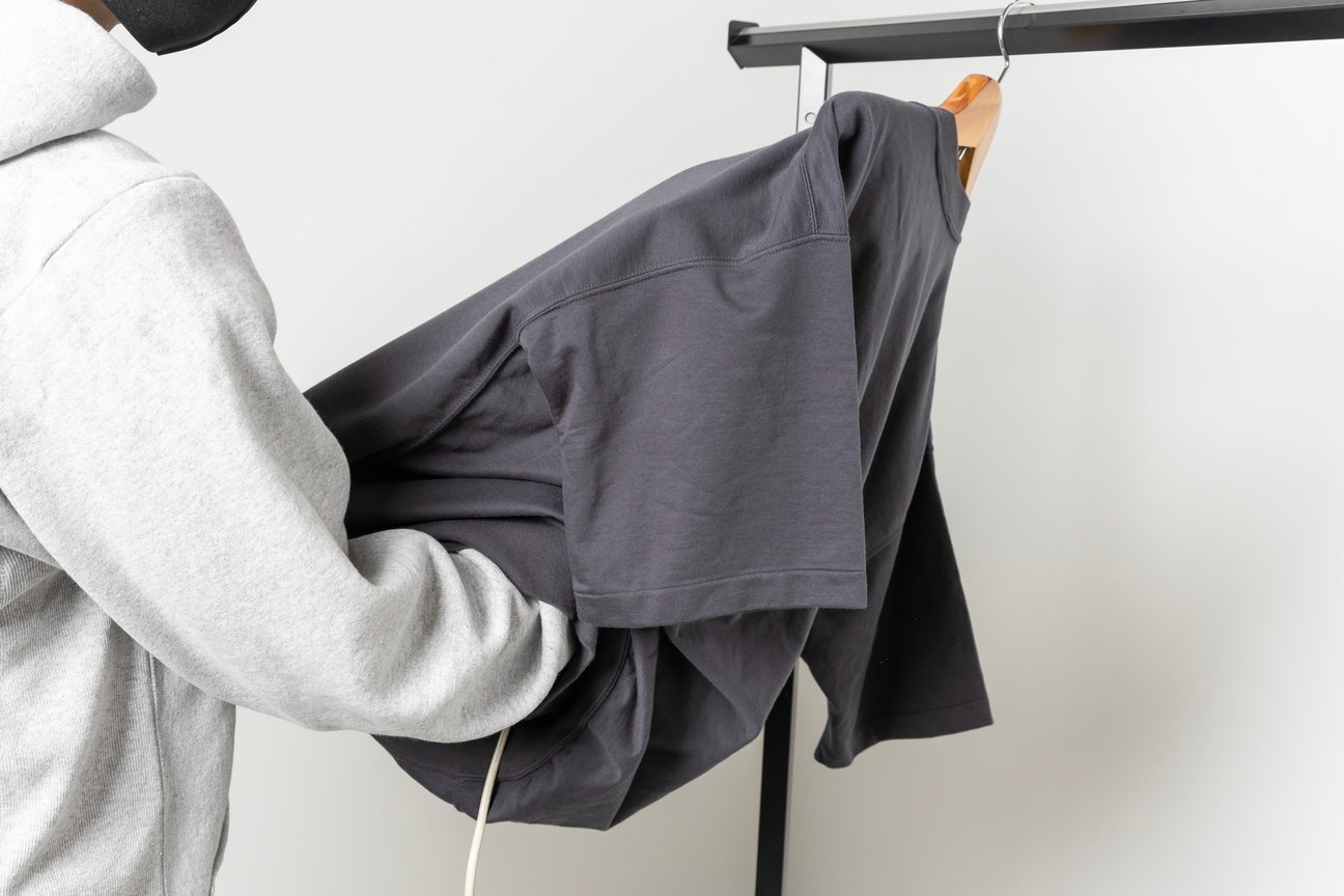 裾や袖、ボディにシワが見られるこちらのTシャツ。実際にスチームがけをしながら古川さんに解説してもらいました。