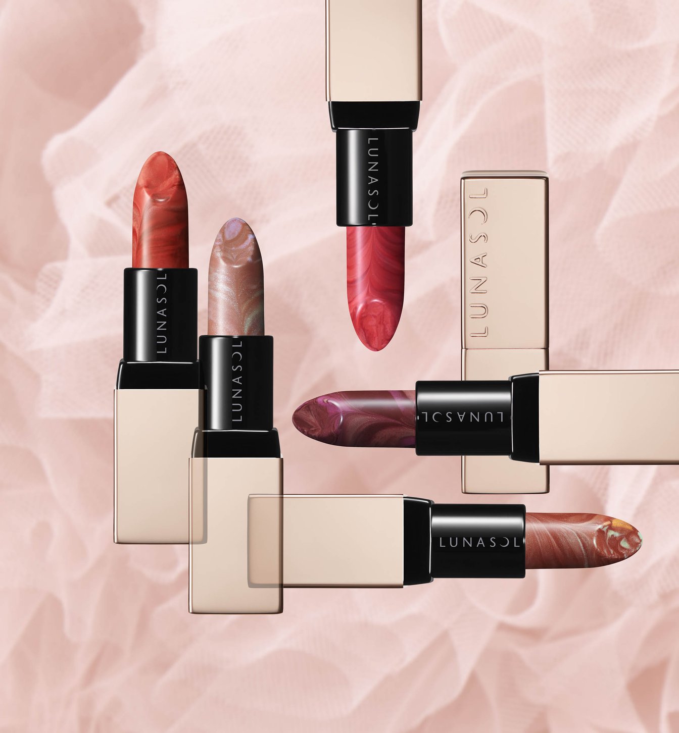 リップスティック「マージングリップカラーブラッシュ」は、単色アイシャドウ「マージングカラーアイズ」と同様に3色をミックスし、じんわりと滲み出たような血色感に仕上げる限定アイテム。女性らしさを引き立てる「ベロアレッド」、深みのあるモーヴ「マグノリアモーヴ」、ミステリアスなニュアンスの「サテンドレス」、表情を明るくする「ブリリアントフレイム」、神秘的で温かみのある「ミスティックアンバー」の5色が登場します。