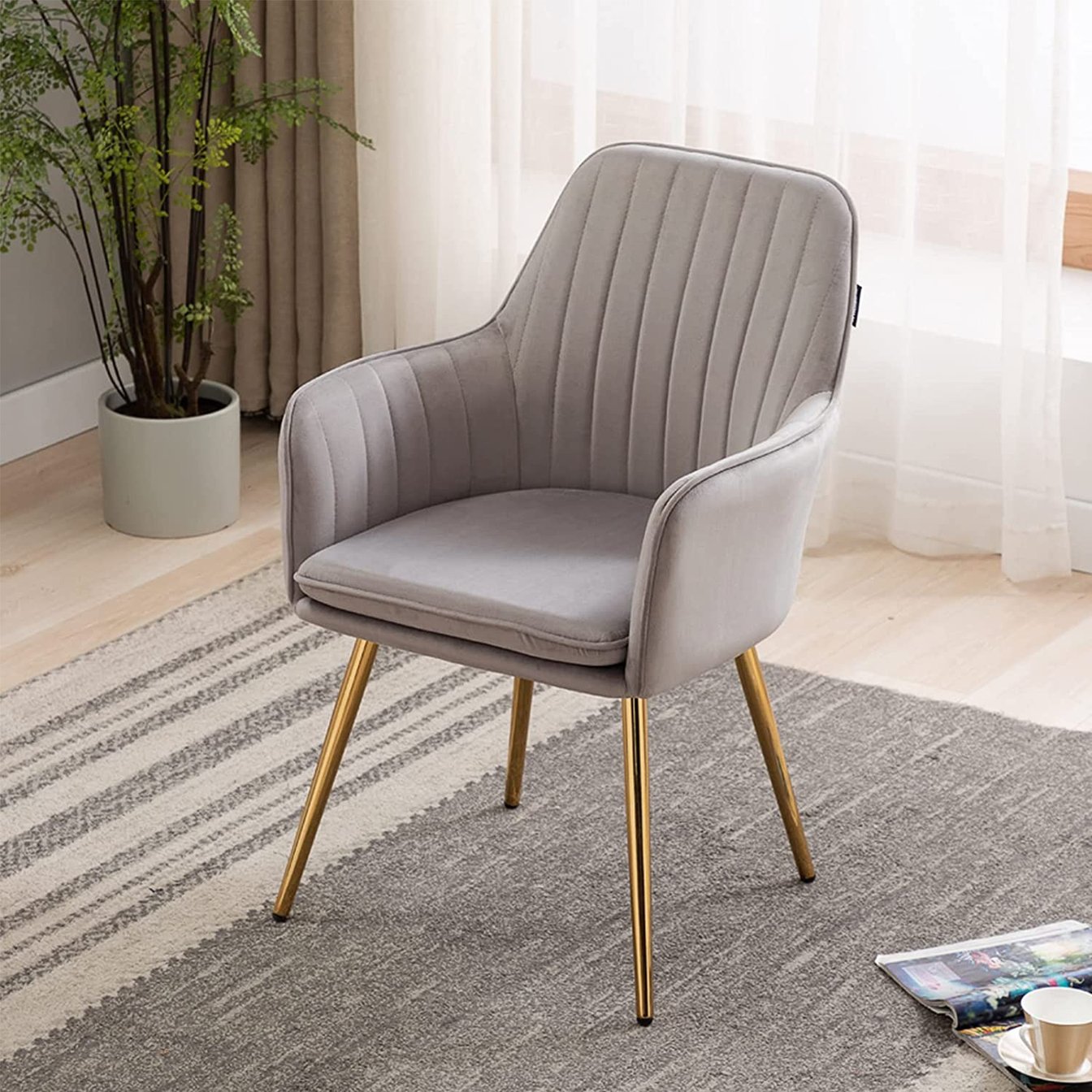 Altrobene ダイニングチェア 肘付き おしゃれ 北欧 椅子 ゴールド脚付き ベルベット ドレッサーチェア カフェバー ホーム オフィス レストラン用 オフイスチェア デスクチェア コンピュータチェア メイクアップチェア グレー ¥17,999(税込み)