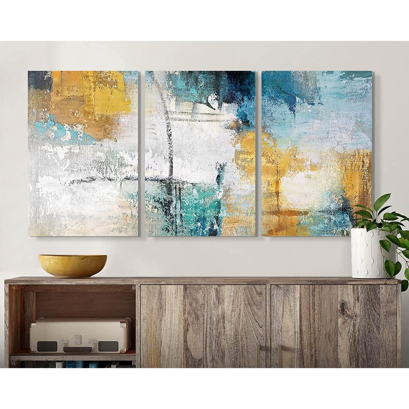 インテリア アートパネル 北欧 おしゃれ 玄関 寝室 装飾用 絵画 抽象画 青灰色 事務室 リビングルーム(木枠付きの完成品)40x60cmx3pcs ¥6,490(税込み)