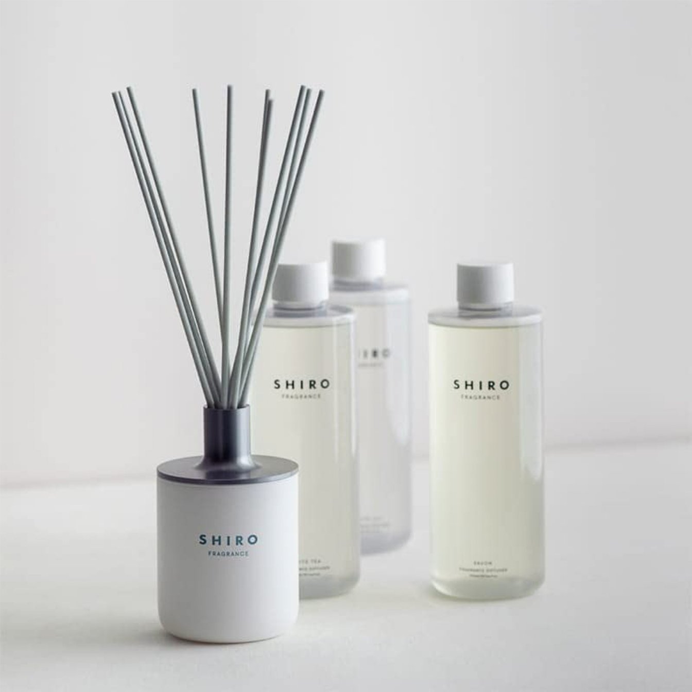 最後にご紹介するのは「シロ(SHIRO)」のディフューザー。すっきりとしたフローラルの爽やかな甘さに惹かれる“ホワイトリリー”は、癒し効果も美しい香りの演出も叶うプロダクト。2回目からは、本体のボトルにリキッドを詰め替えて香りを楽しめます。