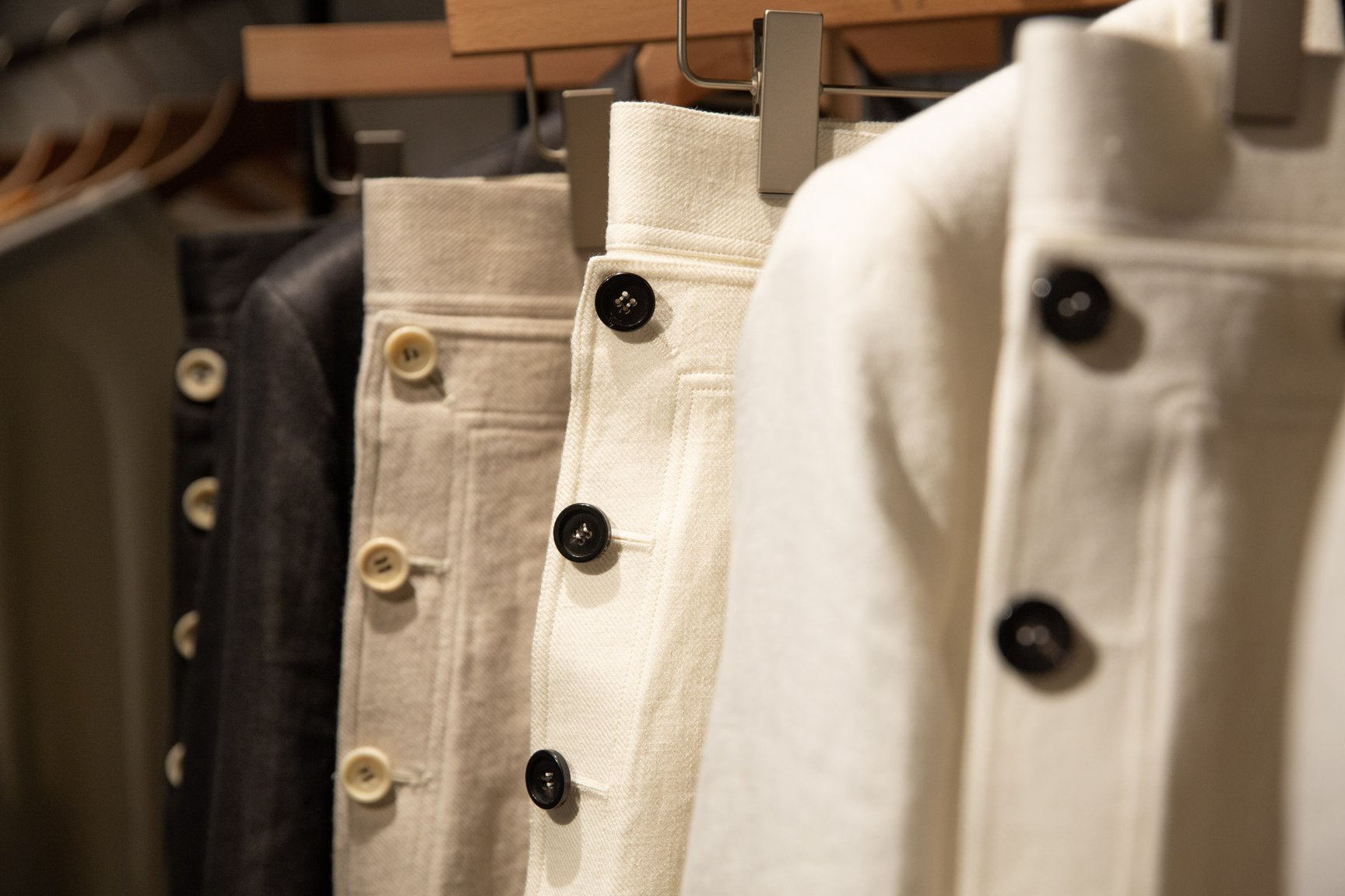 暑い日が続いているので商品が動いていくのはもう少し先だとは思うんですが、先んじて関係者向けに行った展示会では特にオリジナルファブリックを使ったキャバリーツイルトラウザーの評判がとても良かったですね。サイドの切り替えを無くし、履いた時のシルエットの美しさを追求したアイテムで、男性だけではなく女性の方からも好評でした。そのほか、ホワイトカシミヤ混のウール原料を使用したブロックチェックのシャツや、ウール100%のタータンチェック柄のシャツ、40年代のデッキパンツを原型にオリジナルで作ったオーバーシルエットのオールインワンなども反響がありましたね。