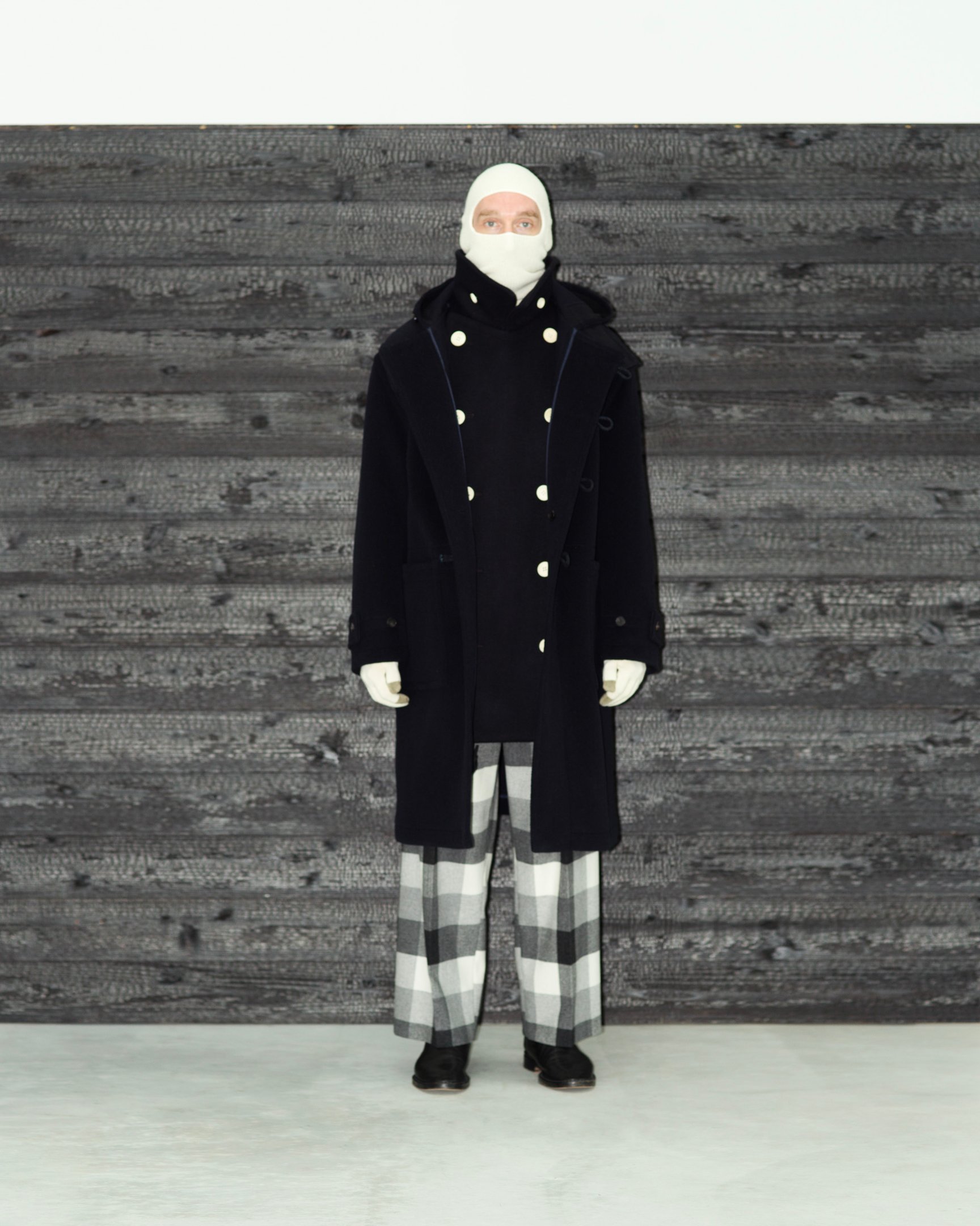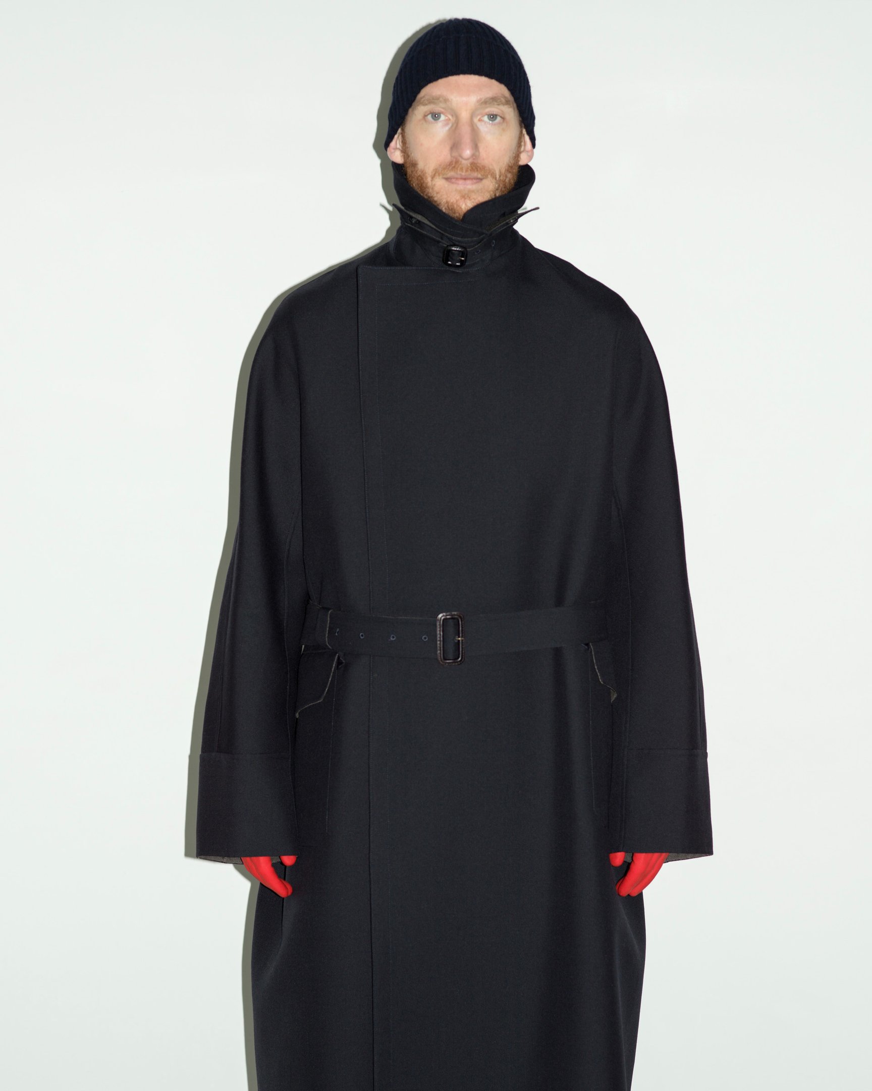 海軍の防寒着として使われていたタフなイメージや、動きやすさは残しつつ、シルエットを現代の人にも受け入れられるようアップデートしました。アイテム制作においては素材や生地選び、工場の選定までかなりこだわり抜いていて。今回のPコートでは、ホワイトカシミヤとタスマニアウールをブレンドしたヘビーメルトンを使用していて、深海を彷彿とさせる深いネイビーはブランドのシグネチャーカラーとして他のアイテムでも使われています。