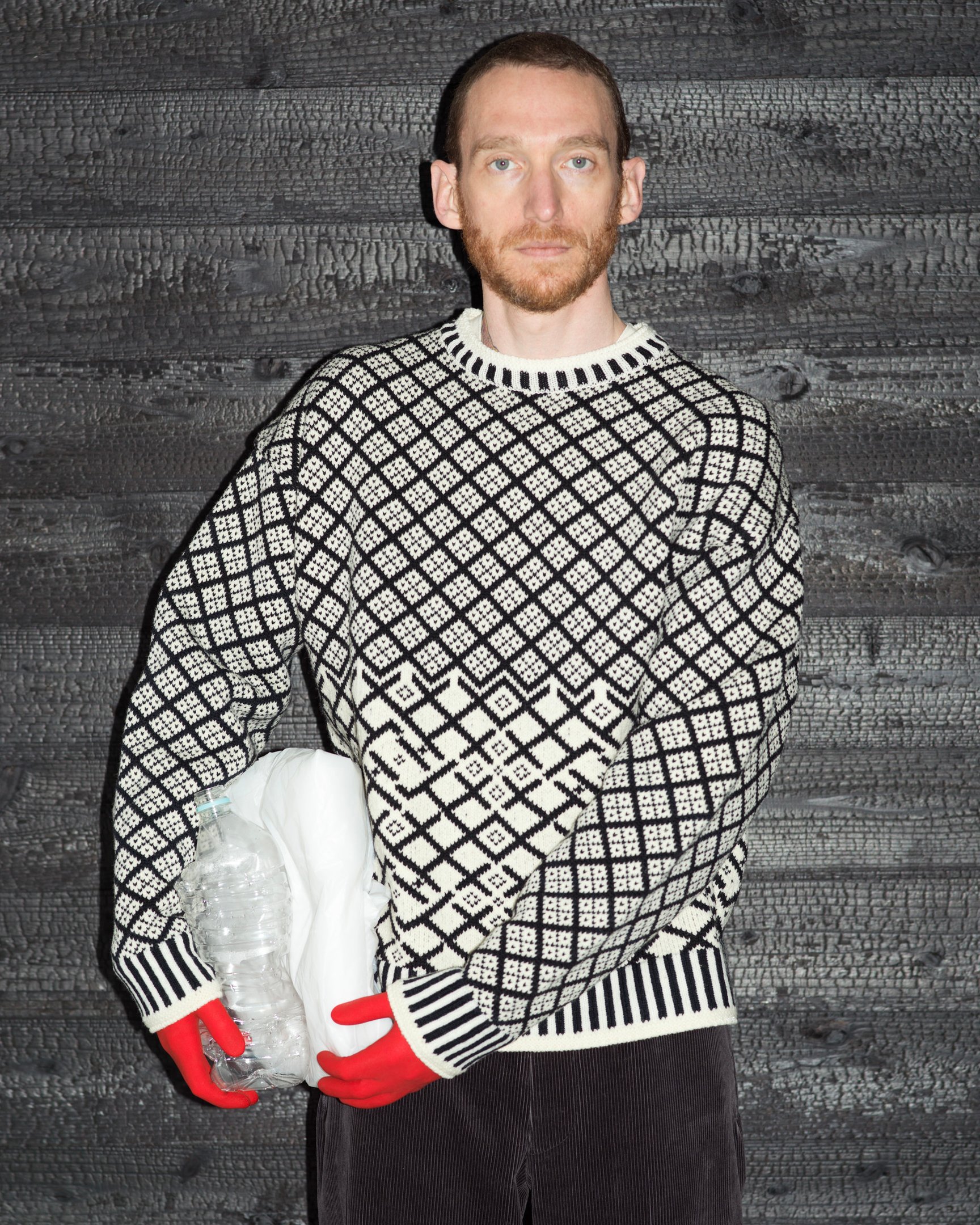 テーマは「白鯨」。ハーマン?メルヴィルの長編小説で「白鯨」という作品がありますが、非常に希少な幻の生物なんです。そんな人々が魅了してやまない神秘的な存在をコレクションで表現できたら面白いのではないかと考えて。クジラからインスパイアされたボリュームのあるシルエット感のコートや、クジラのお腹の縞模様から着想したスウェットなどを作りました。色味やシルエットで白鯨を表現しているので、今シーズンは前シーズンと比べてホワイトを基調としたアイテムが多くなっています。