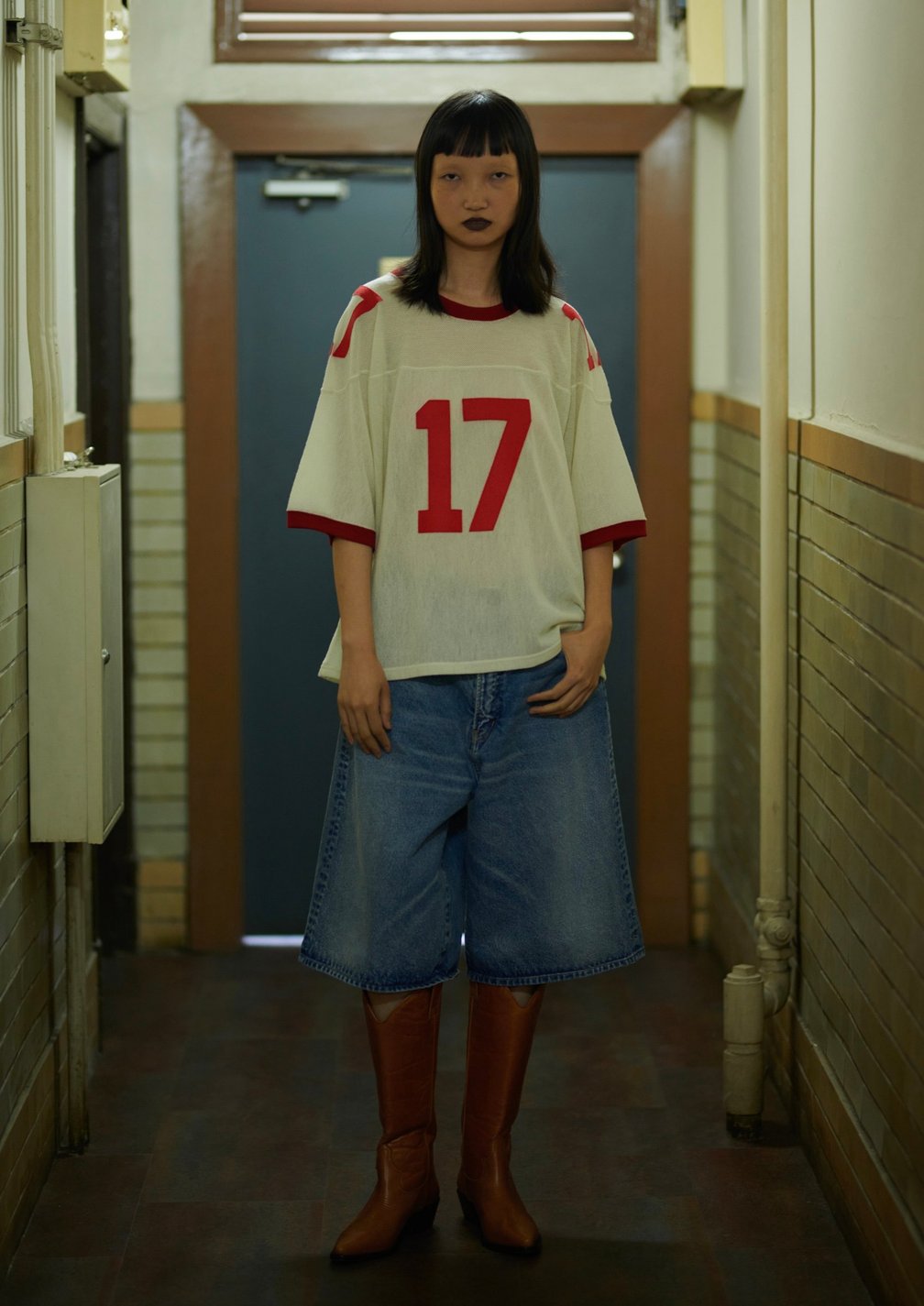ブランドが得意とするユニフォームを現代にアップデートしたコレクションになっています。スポーツウェアを街着としてどうオシャレに着こなせるかというテーマで、タイトなジャージやプリーツスカートなど、大人世代が似合う素材やバランス、スタイリングの提案をしています。「リーバイス(Levi's?)」も時代と共にデザインが異なるように、その時代に合った自分らしさを追求していけたらと思っています。