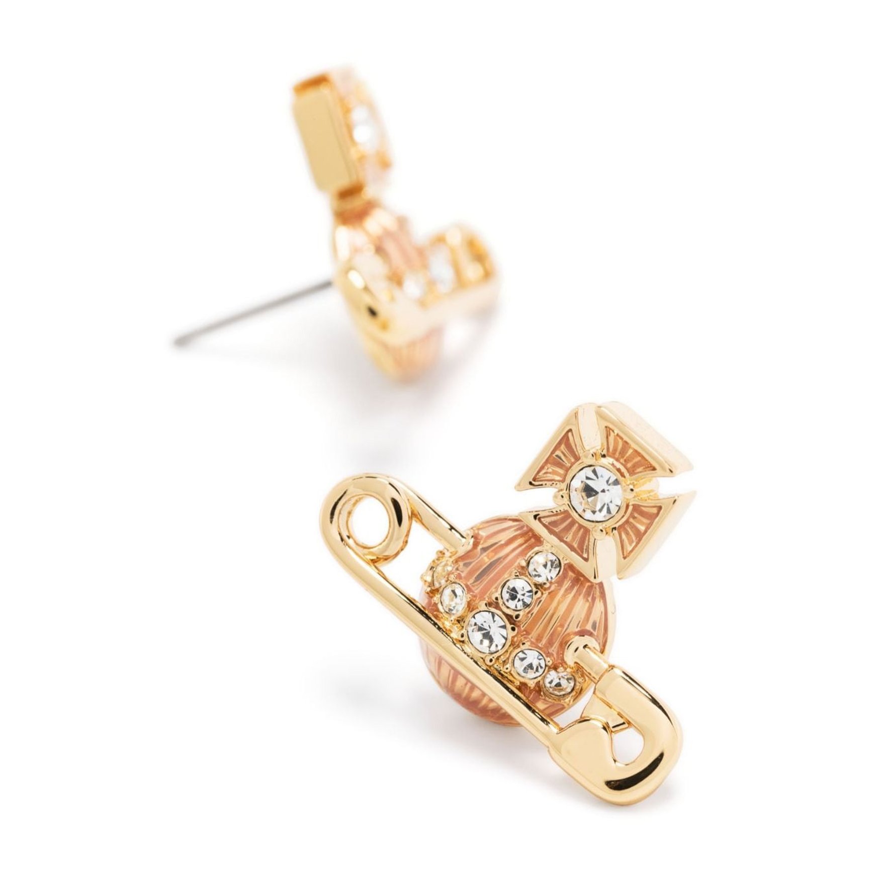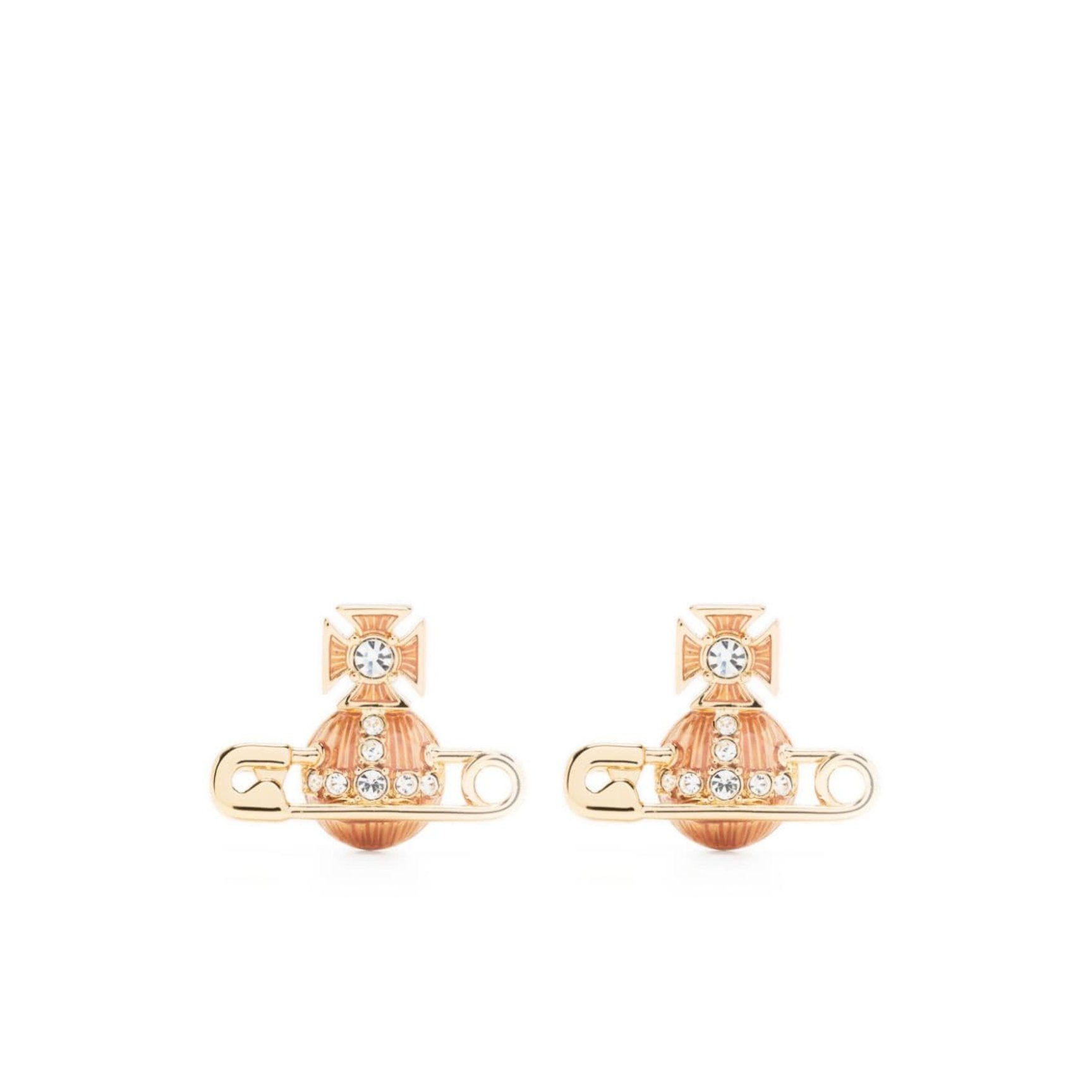 小ぶりながらシグネチャーのオーブを存分に堪能できる、パンクな力強さを秘めた「ヴィヴィアン?ウエストウッド(Vivienne Westwood)」のイヤージュエリー。手作業で仕上げたエナメルにセーフティピンを挿した、特別感のあるピアスは争奪戦の予感。