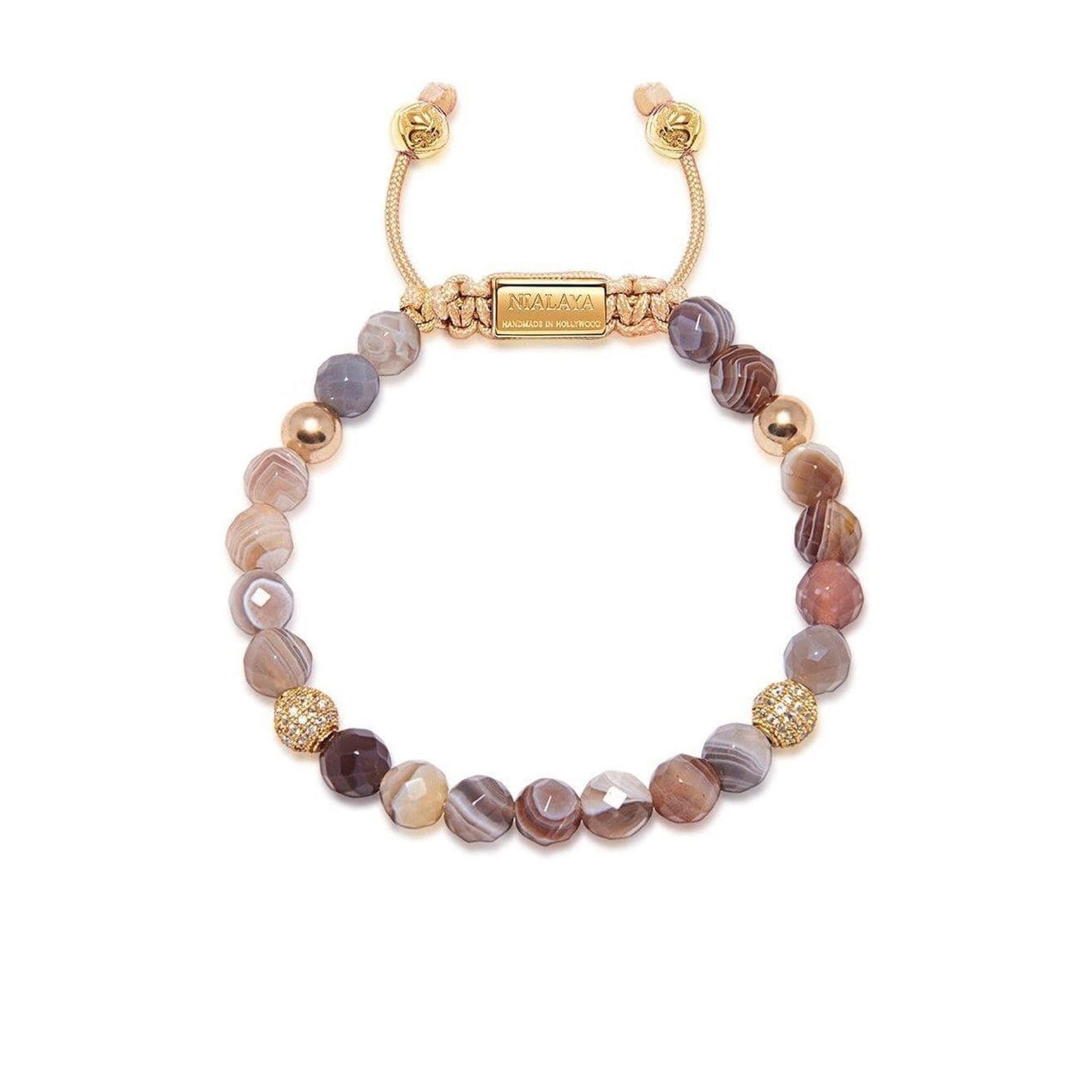 アクティブでカジュアルなルックに似合う、「ナイアラヤ ジュエリー(Nialaya Jewelry)」のクォーツを繋げたビーズブレスレット。可憐な色合いで揃えたアメジストやアクアマリンなどのパワーストーンが、穏やかで落ち着きのある毎日にきっと導いてくれるはず。