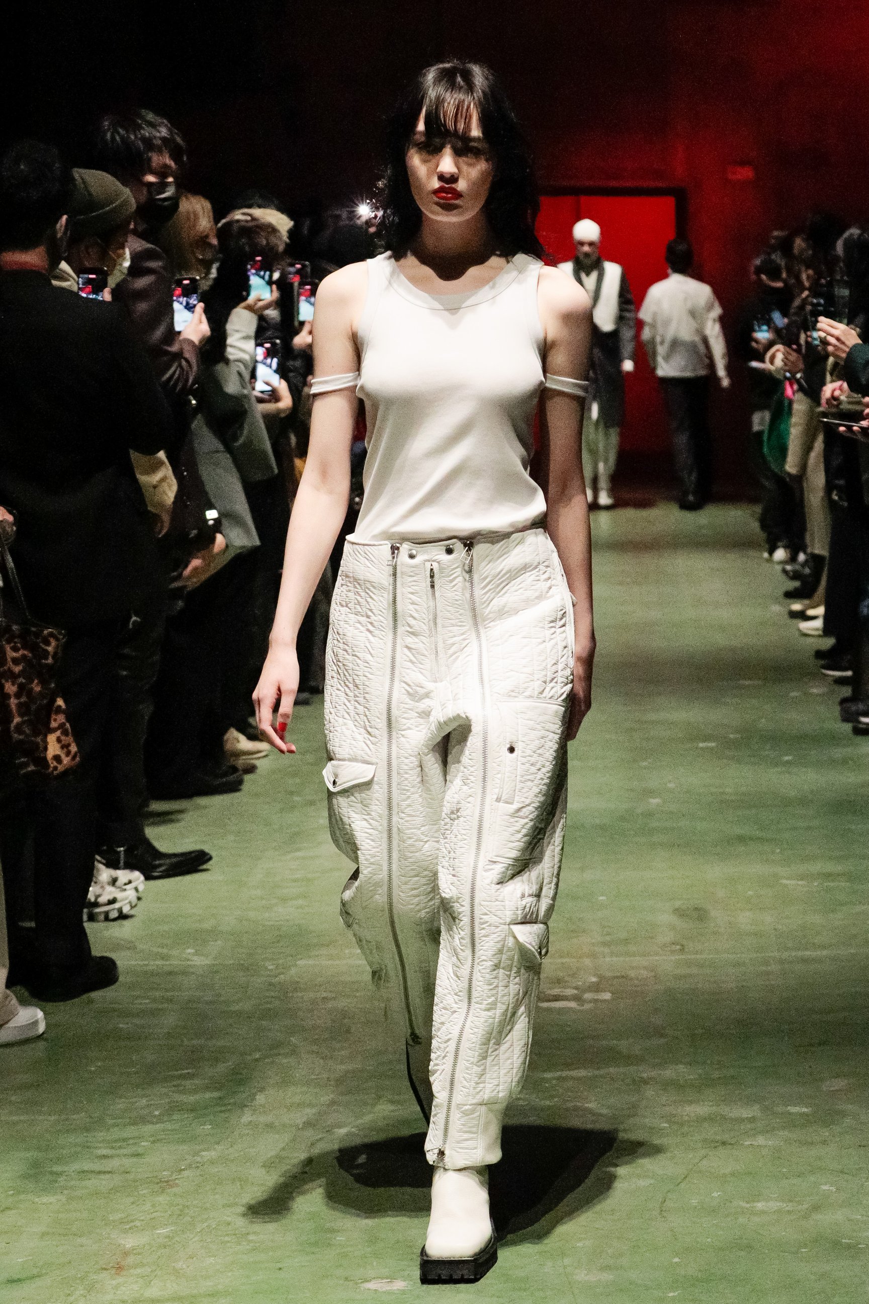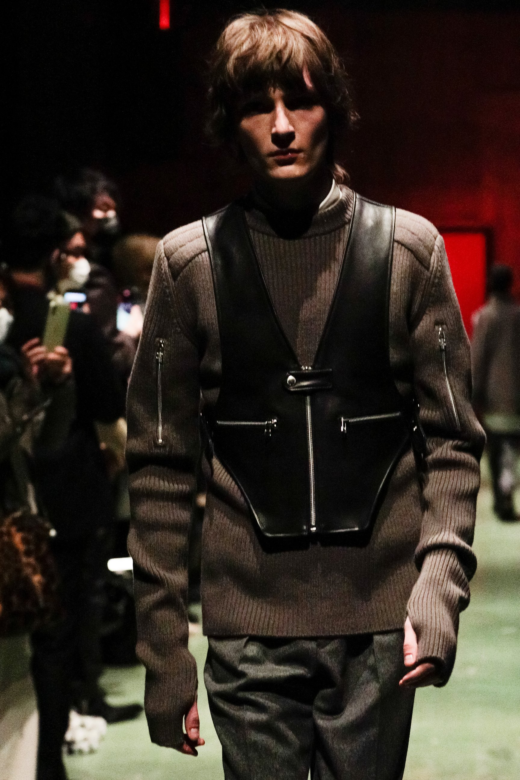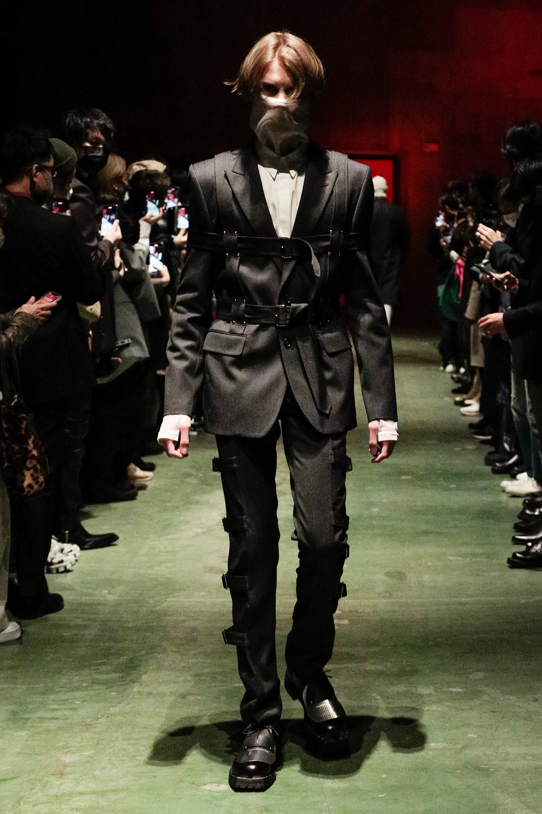 続くルックは、テーラードをベースとしながら、バイク、ワーク、スポーツ、レーシング、拘束着といった、あらゆる「防具」の要素が取り入れられている。ショーでメンズとウィメンズのコレクションをミックスして見せるのは初めてだが、男女の隔てのないスタイリングが多い。