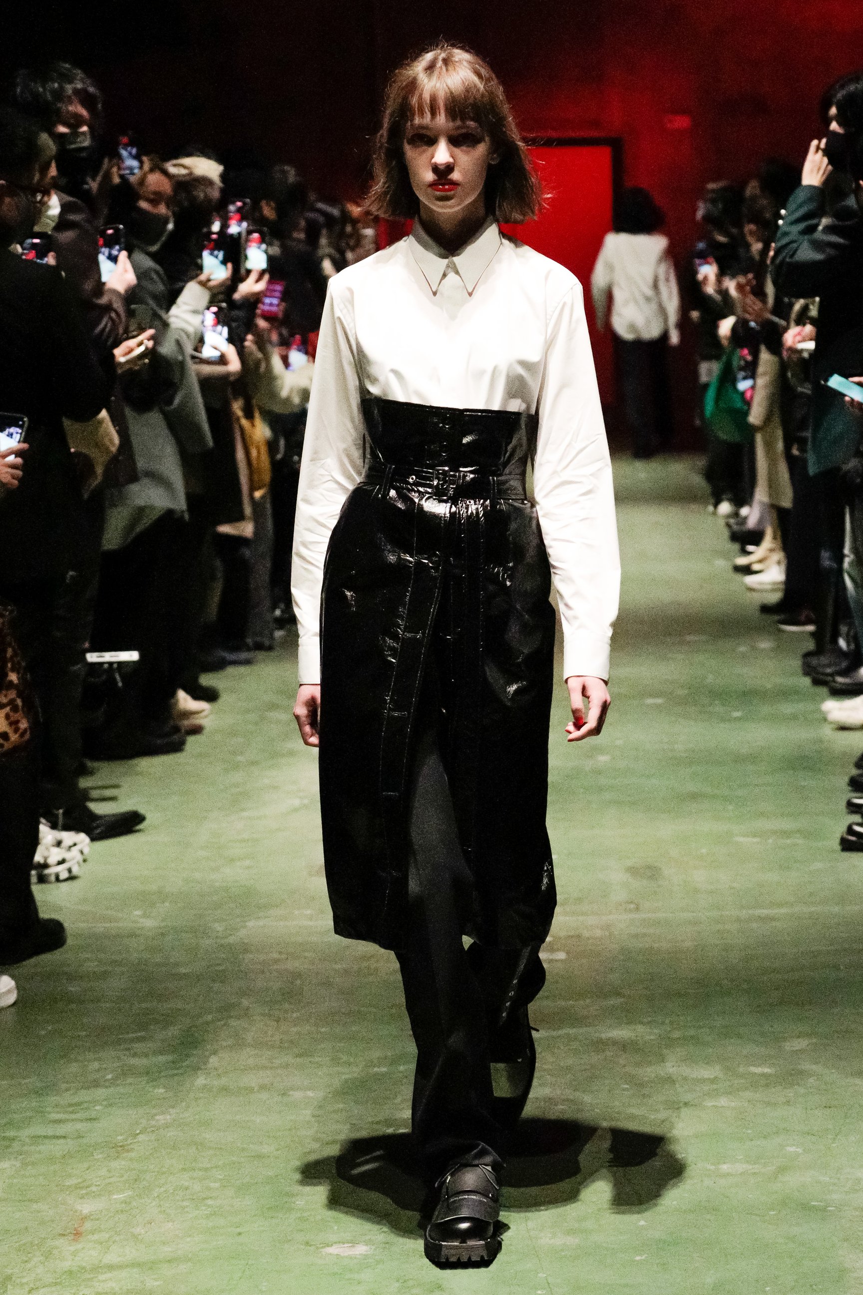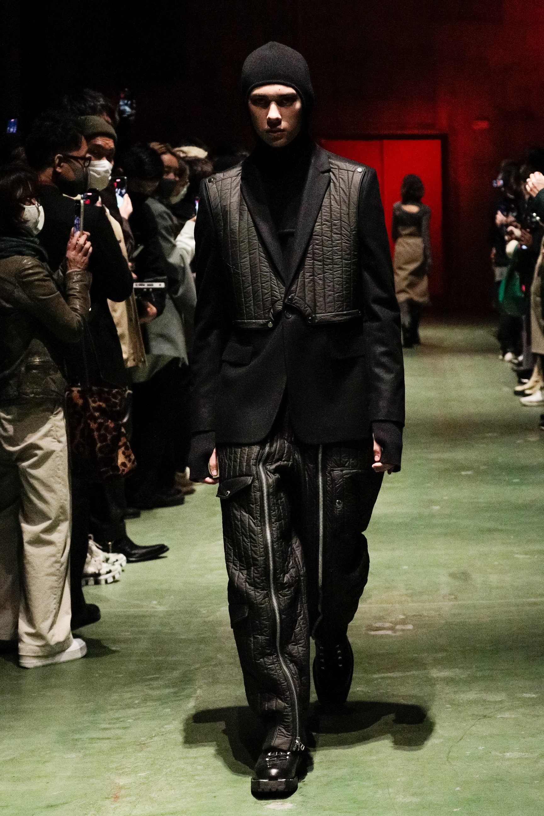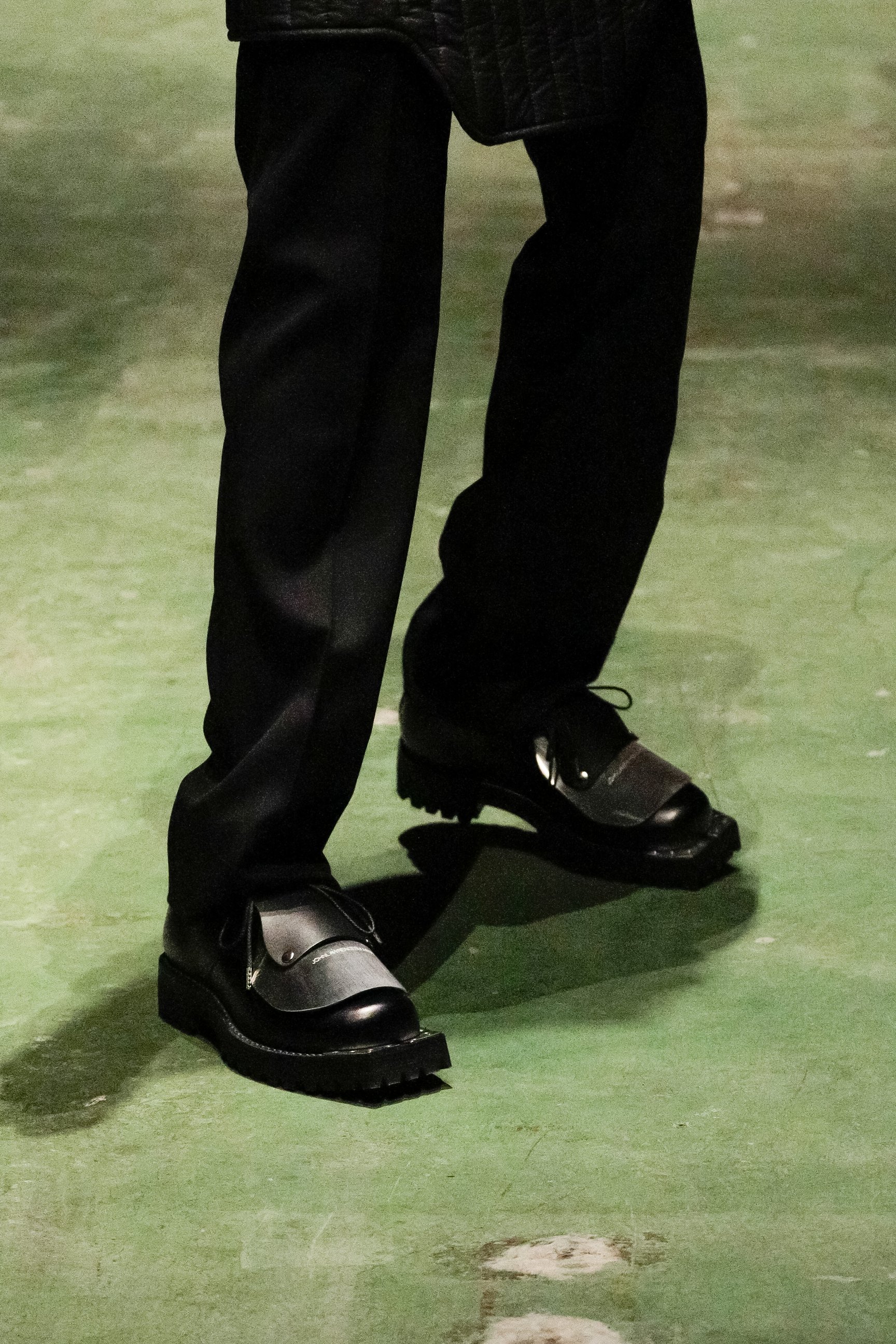 続くルックは、テーラードをベースとしながら、バイク、ワーク、スポーツ、レーシング、拘束着といった、あらゆる「防具」の要素が取り入れられている。ショーでメンズとウィメンズのコレクションをミックスして見せるのは初めてだが、男女の隔てのないスタイリングが多い。