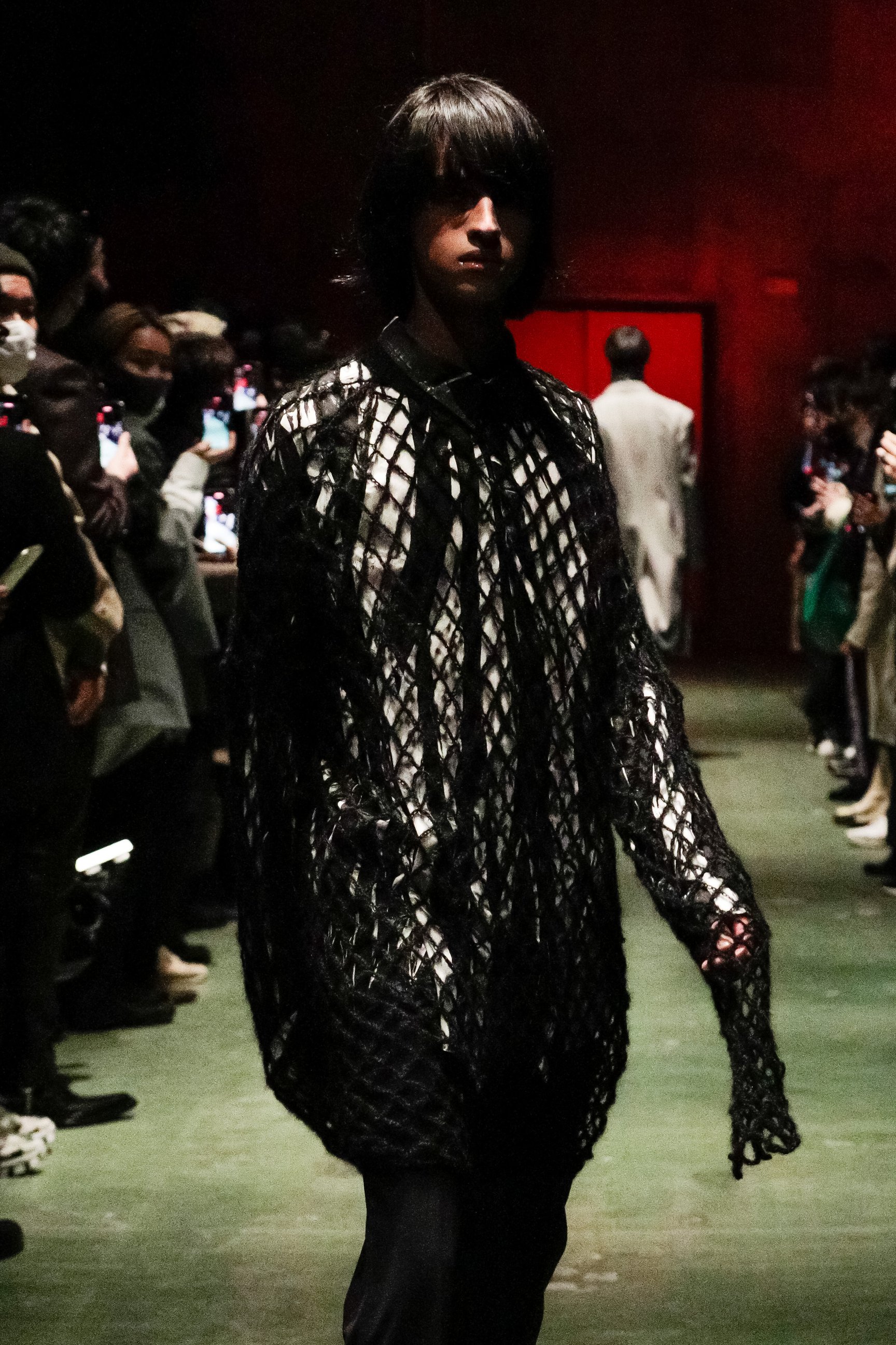 終盤のブラックスーツのモデルが着用していたサングラスは、スタイリングを手掛けた宮下が手掛ける新ブランド「タカヒロミヤシタザレフトアイ.(TAKAHIROMIYASHITATheLeftEye.)」の0001.モデル。同じ東京をホームとする2人のデザイナーのクリエイションが融合していた。