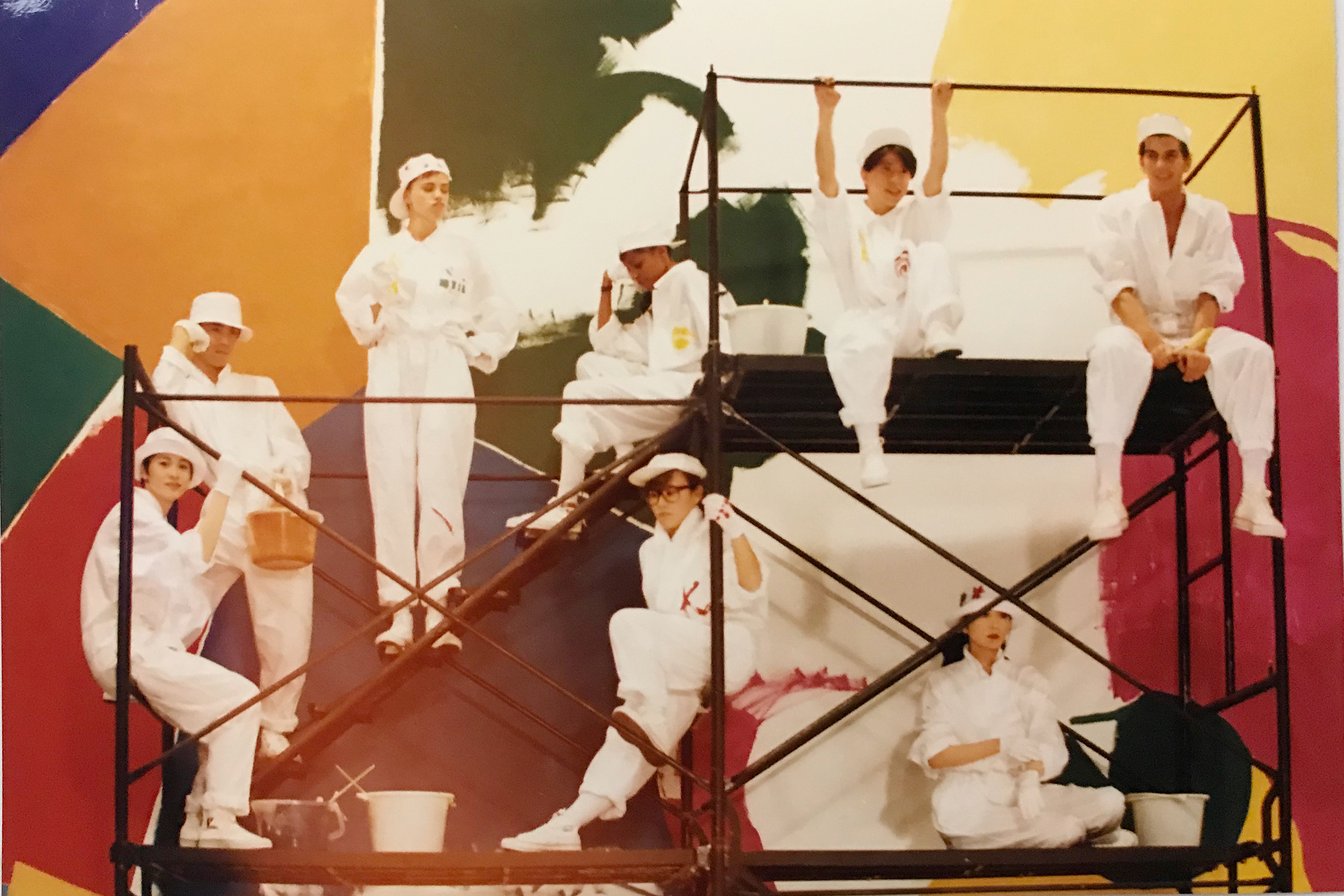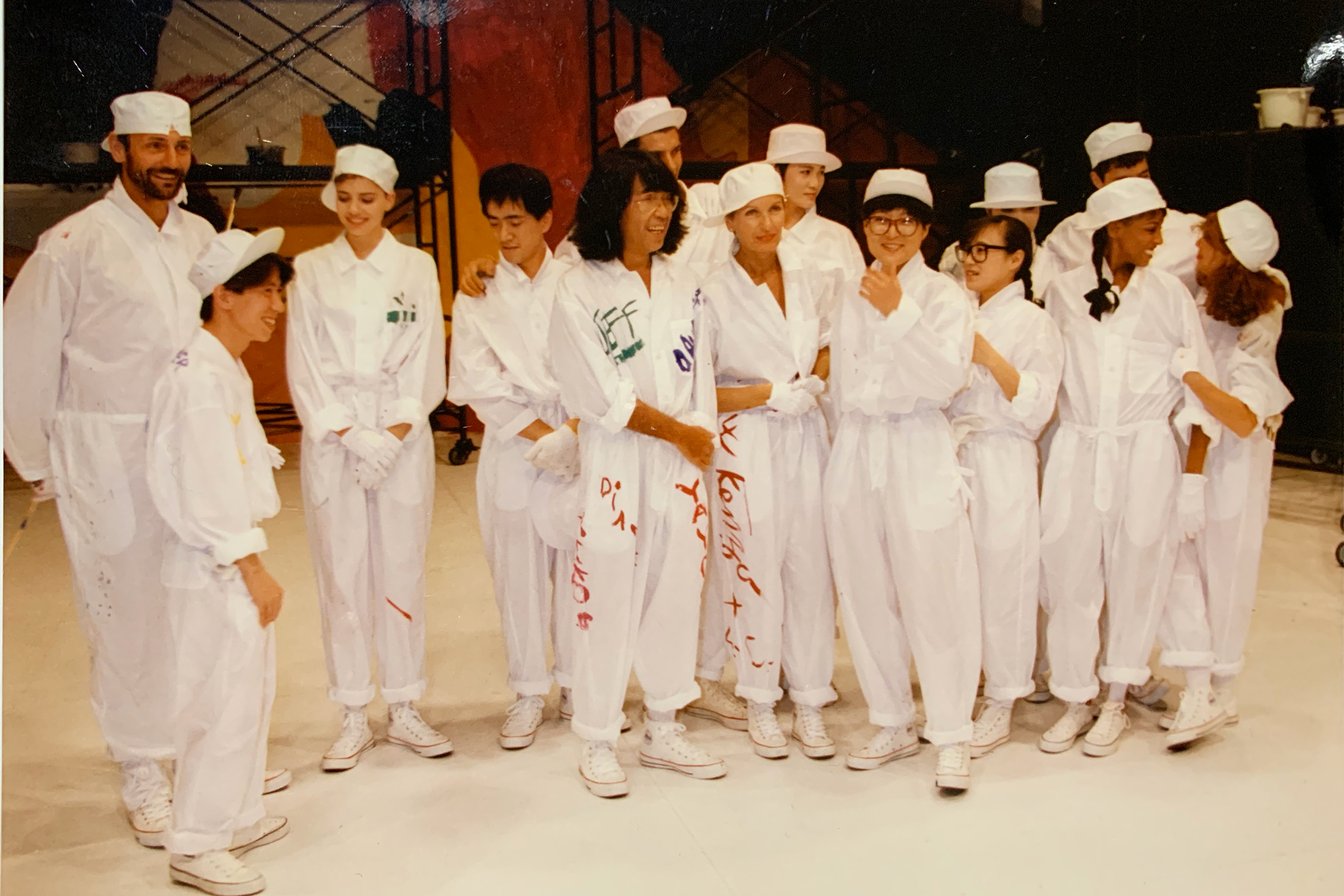 1987年「夢工場」:東京と大阪でKENZOブランドのショーを開催。中央:高田賢三(筆者提供)