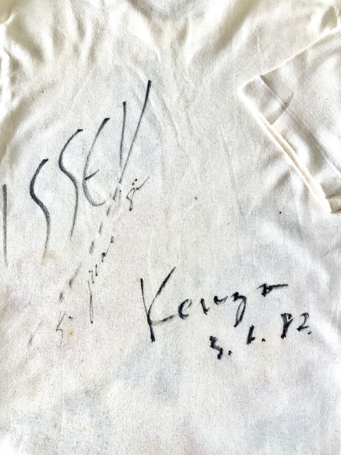 スタッフTシャツの背面に、三宅一生氏と高田賢三氏、2人のデザイナーにサインをしてもらった。(筆者私物)
