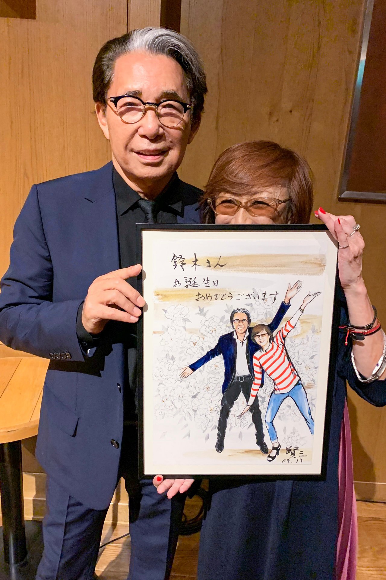 なんと、サプライズで賢三さんから素晴らしいプレゼントを頂いた。ひとつは、賢三さんが身につけていた中でも私が一番好きだった「カルティエ(Cartier)」の時計。一緒に時を重ねてきたという意味も込められた、本当に嬉しい贈り物だった。もうひとつは、以前から切望していた絵画。しかも、賢三さんと私のツーショット。後で聞いた話だが、何度も何度も描き直して完成させてくれたのだそうだ。