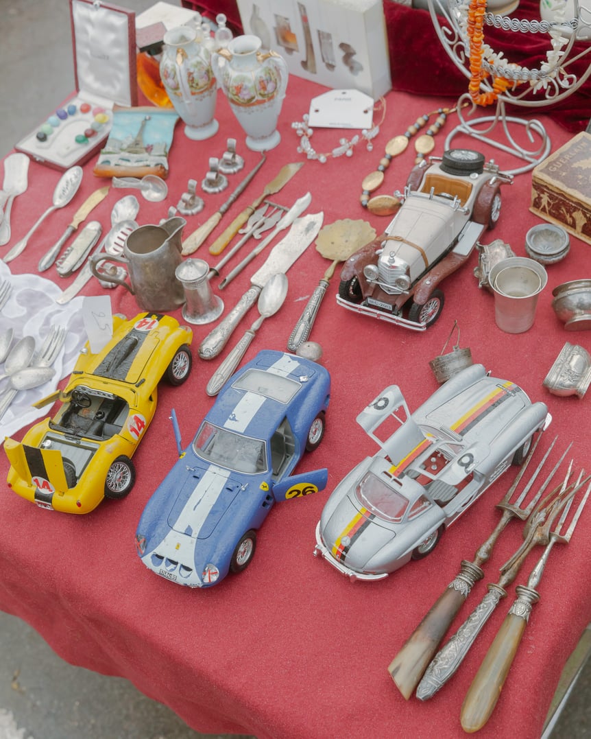 パリ市内には主に3つの蚤の市(フリマ)がある。最大規模のクリニャンクール蚤の市(サン?トゥーアンの蚤の市)、日用品の多いモントルイユ蚤の市、そしてヴァンヴ蚤の市だ。「ピュス?ドゥ?ヴァンヴ(Porte de Vanves)」駅を降りたところにあるヴァンヴ蚤の市は3つの中では最も規模が小さいが、その分治安も良く、路上での宝探しにもってこいのフリマで、Kokiはパリで展示会をする際にはヴァンヴとクリニャンクールに訪れるという。実際に、蚤の市で撮影した写真をプリントしたアイテムを展開したりと、コッキのデザインに蚤の市での体験が反映されることもあった。
