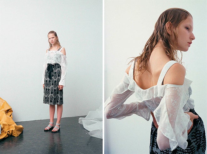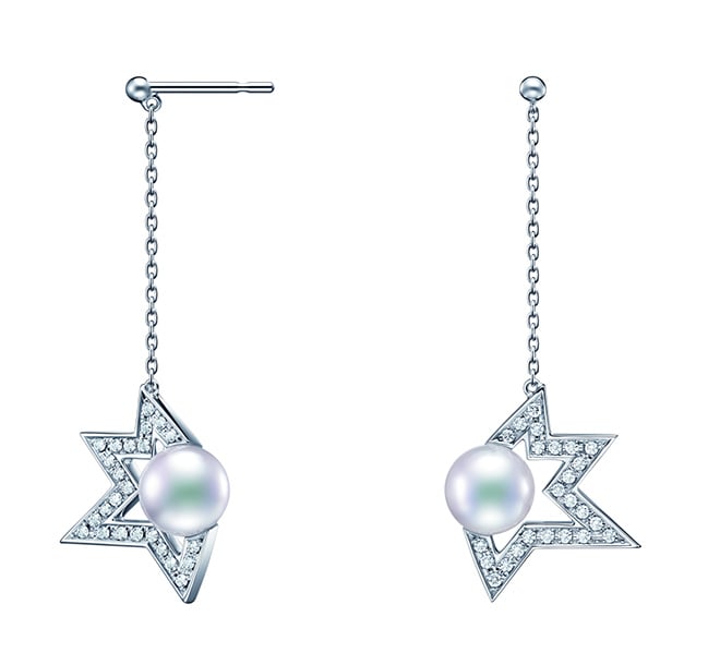 新垣結衣さんが着用した衣装は「サカイ(sacai)」2017年春夏コレクション。コレクションルックと色違いの白いレースのトップスに、彗星の輝きをモードに表現した「タサキ(TASAKI)」の新作ジュエリー「コメット(comet)」のイヤリングを合わせました。